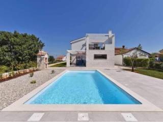 The house consists of a living room, a dining room, a room with a fireplace and a billiard table, a kitchen from which there is access to a large terrace overlooking the swimming pool surrounded by greenery on a plot of 1113 m2.
