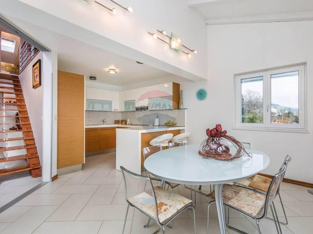 For rent, long-term luxury penthouse 3S+DB with gallery, 222.20 m2, on the 2nd floor, in a quiet location surrounded by greenery, close to the sea and the center of Opatija.