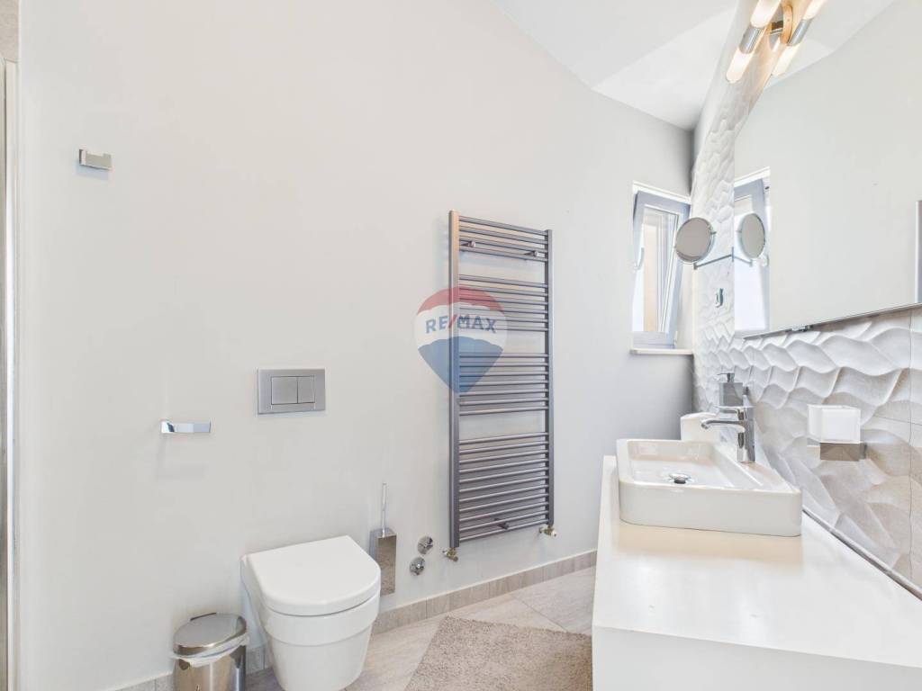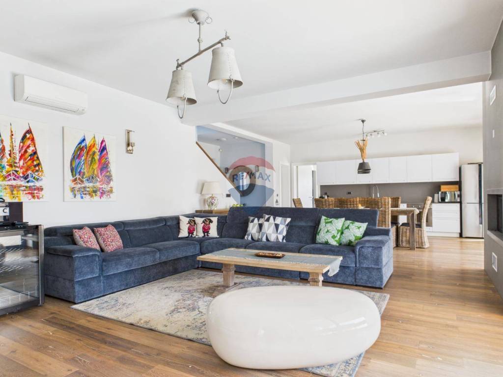 The house is full of natural light and features wooden floors, high-quality sanitary fittings, and aluminium joinery. The furniture is of excellent quality, giving the interior a modern and elegant look.