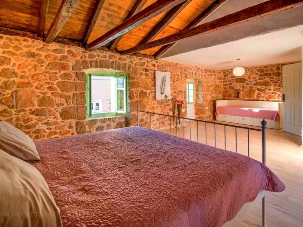 From the good real estate offer of the Stan Grad Immobilien agency, a beautiful romantic stone house in the region of the Island of Krk has been singled out. The property is located near Vrbnik, in a location that offers enjoyment of the greenery of nature and peace. This beautiful house of good quality is built on 2 floors. It consists of ground and first floor. The house covers a total area of 150 m2. Very tastefully decorated. This area includes a living room and kitchen, 3 bedrooms, 2 bathrooms, 1 toilet, 1 covered terrace. The property also has a beautifully landscaped garden with pool and sun deck. The yard of the property includes a place arranged for comfortable parking of vehicles. In addition to the above, it is not negligible to say that the house has a beautiful view of natural vegetation, a true oasis of peace for rest. This property is owned by a natural person. The seller of the house guarantees complete ownership documents and proper transfer of the property. Stan Grad Immobilien office agents will help you with the registration of the house and all other administrative tasks.