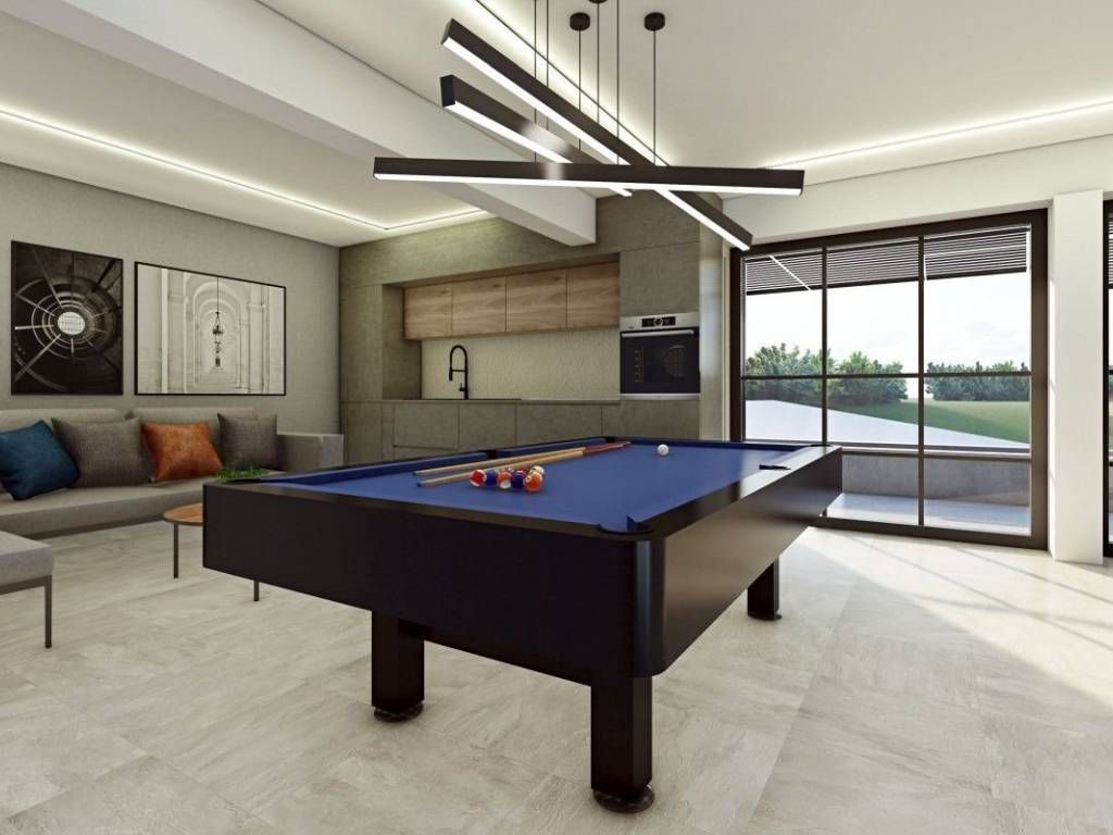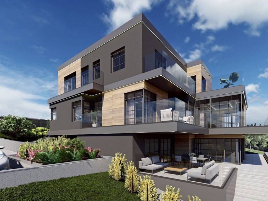 The modern villa is located on a plot of 1239 m², with a total gross area of 557 m² spread over three floors. It is located on the edge of the Medvednica Nature Park, in a peaceful environment with panoramic views. The property is being sold in the unfinished phase, and the project includes an indoor pool, sauna, elevator connecting all floors, summer kitchen, large terraces and spacious living areas. The concept allows for the construction of a luxurious family villa, with the possibility of adapting to the needs of the investor. The ground floor includes a garage for two vehicles with additional parking spaces, a workshop, laundry room, technical rooms and a wellness area with a swimming pool and sauna that opens onto a spacious terrace. The first floor is designed as a living area with a kitchen, dining room and living room, study, guest toilet and bedroom with en suite bathroom. The second floor has a master bedroom with a dressing room and bathroom, two additional bedrooms, a shared bathroom, storage room and a large terrace. The villa is designed to high energy efficiency standards. Underfloor heating with a heat pump, a solar power plant for shared systems, high-quality insulation and preparation for charging electric vehicles are planned. A Schindler elevator has already been ordered and is included in the price. The property is oriented to all sides of the world, and the overall concept includes three floors with an indoor pool, elevator, garage for two cars and additional parking spaces.