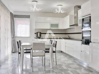 The apartment covers an area of 119 m and consists of a spacious entrance hall, a bright living room with dining area and terrace, a modern, fully equipped kitchen with top-of-the-line appliances, three bedrooms, two of which have access to the terrace and a fourth, smaller study. The apartment also has an elegant bathroom with a bathtub and shower and a separate guest toilet.