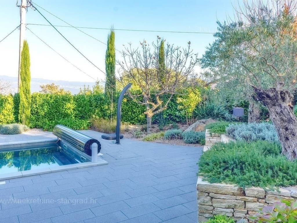 The Stan Grad Immobilien agency in Kvarner sells an interesting holiday home in the traditionally most sought-after Croatian Adriatic area, the island of Krk. The mentioned house is located in a very nice position not far from the sea in Soline Bay. Structurally speaking, this is a single-story house. The impeccably executed property consists of a total of 3 floors. The house has two separate apartments. The total area of ​​this house is 300 m2. On the ground floor of the mentioned property there is a studio apartment, an equipped gym, a sauna and a 9-meter heated swimming pool. There is a two-story apartment on the first floor. The lower floor of the apartment consists of a spacious living room, kitchen and dining room, 1 bedroom with its own bathroom, a guest toilet and access to a large terrace with a panoramic view of the sea. On the upper floor of the apartment there are two bedrooms, each with its own bathroom. The interior of the property is particularly well maintained and fully equipped with the necessary technical devices and high-quality furniture. The added value of this entire building is given by the garden enhanced by a swimming pool heated by a heat pump, and the water is heated by solar panels and a sunbathing area, Mediterranean plants and a summer kitchen. The spacious garden of the described property offers covered parking for several vehicles with a charging station for electric vehicles. In addition to all of the above, it should be noted that the property has a beautiful open view of the sea. This real estate is owned by a natural person and as such, upon transfer of ownership to the buyer, is subject to the obligation to pay real estate sales tax in the amount of 3%. The owner of the house guarantees a quick transfer of the right to dispose of the property to the buyer. It will be our pleasure to receive you and serve you on the island of Krk. The Stan Grad Immobilien agency will provide all its clients with all the necessary assistance in registering ownership and taking over the real estate itself.
