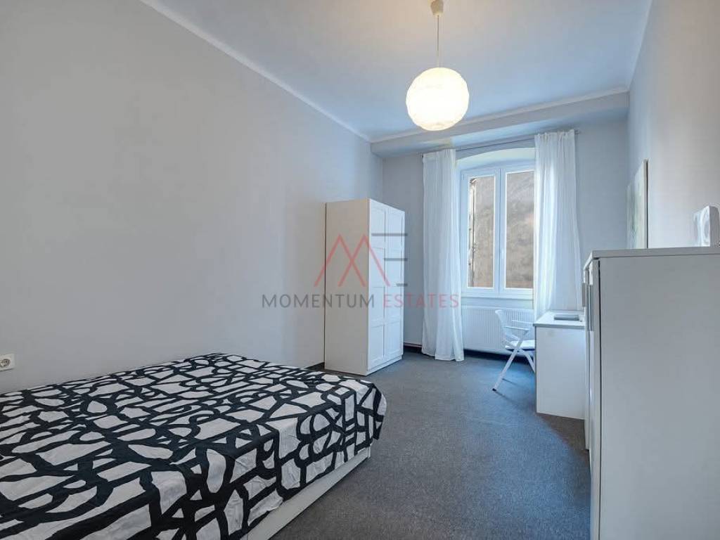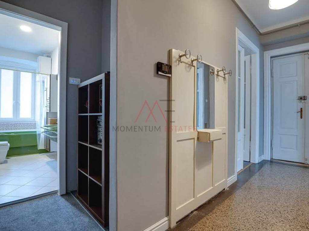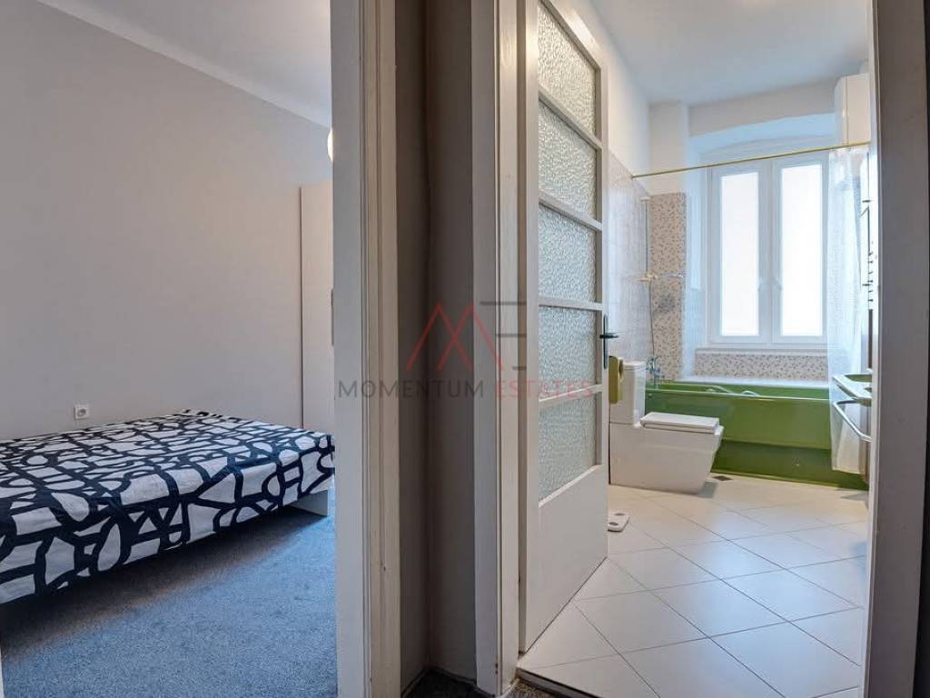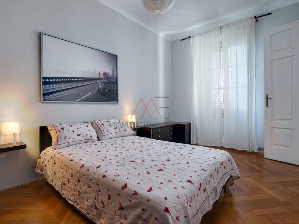 Iznajmljuje se prostran stan od 109 m2 na trećem katu bez lifta u strogom centru Rijeke, idealan za obitelj ili 3 studenta. Stan se sastoji od 3 spavaće sobe, dnevnog boravka, kuhinje, špajze i kupaonice. Iznajmljuje se isključivo za dugoročni najam. Stan se nalazi u neposrednoj blizini Pomorskog, Ekonomskog i Medicinskog fakulteta, kao i Zdravstvenog studija. Autobusni kolodvor i Korzo udaljeni su svega pet minuta hoda, a u krugu nekoliko minuta nalaze se i trgovina, ljekarna, pošta, banka i kiosk.