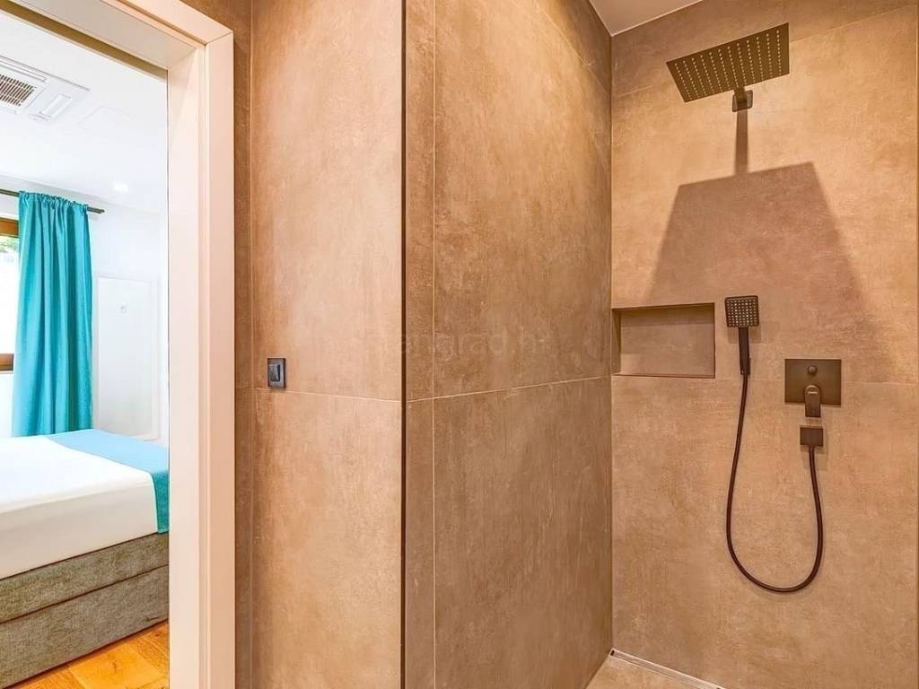 A very valuable and expensively built holiday home on the famous and attractive Adriatic tourist area of ​​the island of Krk is for sale at our agency in Kvarner. This house is positioned in a quiet location near the town of Krk, not too far from the sea. Structurally, this is a two-story house. The modern built house consists of a space distributed over a total of 2 floors. The property covers a total area of ​​140 m2. The mentioned area on the ground floor contains an entrance hall, toilet, storage room, bedroom with its own bathroom, open space kitchen with dining room and living room with access to the garden. On the first floor of the house there are two bedrooms, each with its own bathroom, wardrobe and access to a large terrace. The special charm of this property is given by the exceptionally well-kept garden, which includes a swimming pool, sunbathing area, covered terrace, summer kitchen and a lounge for socializing. There is enough space in the garden of this house to park two cars. In addition to the above, it should be noted that the house has a beautiful view of this seaside place. This real estate is owned by a natural person and in the name of its transfer, the buyer of the house is obliged to pay real estate sales tax in the amount of 3%. The owner of the house guarantees a quick transfer of the right to dispose of the property to the buyer. Contact us and we will be happy to present this property to you. In addition to the professional presentation of the property, the Stan Grad Immobilien brokerage office will be happy to help you with the transfer of the property and utility bills.