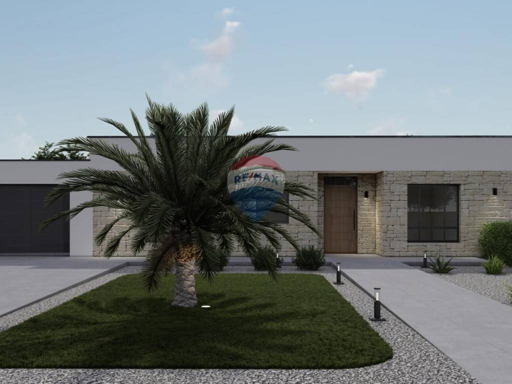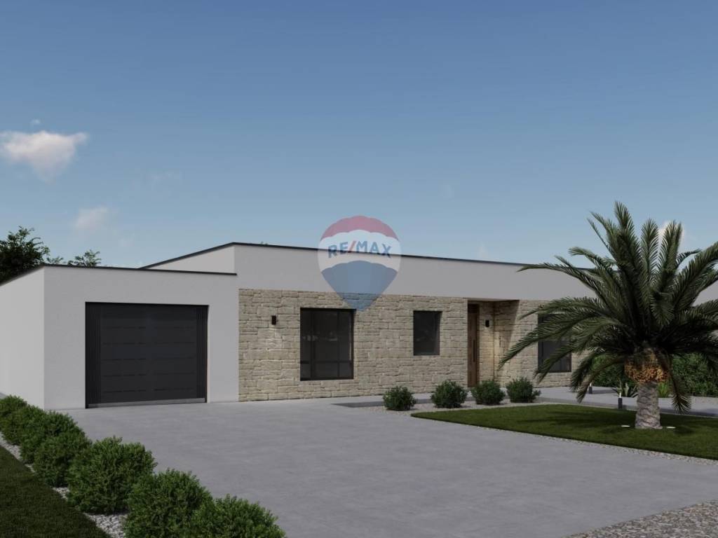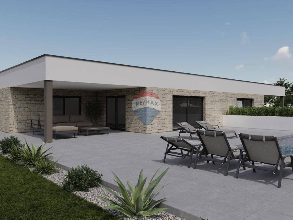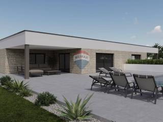 A modern single-storey house under construction is for sale, with a total living area of ​​158.35 m², with an additional garage of 37 m² and a swimming pool of 32 m². The property is located on a 570 m² plot, just 8 km from Rovinj and the sea, or a five-minute drive.
