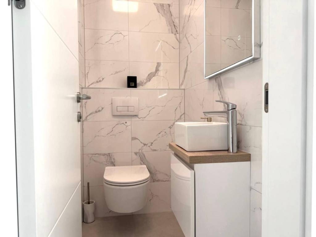 • Modern design and quality construction • Fully furnished and equipped • Beautifully maintained garden and terrace • Quiet location near the beach and city center • Lovely coastal view • Immediate registration in land registry possible