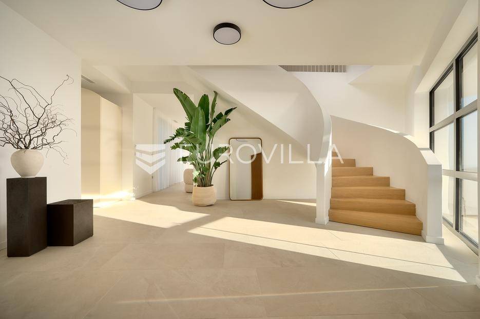 Predstavljamo ekskluzivnu, arhitektonski impresivnu vilu s infinity bazenom i panoramskim pogledom na more, ukupne površine 559,97 m².Zatvorena površina vile iznosi 379,58 m², raspoređenih na tri etaže, dizajniranih za maksimalan komfor i privatnost.