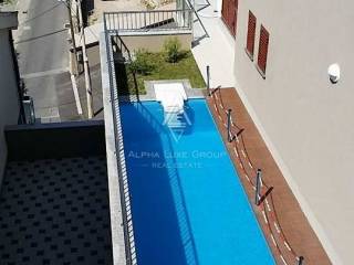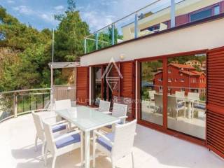 € 590,000Single-family detached house 370 m², RabTwo beautiful villas are for sale near the centre. Villa no. 1 - consists of four floors. In the basement are two garages, bathroom, toilet and small kitchen of 60 m2. On the first floor, there is an apartment consisting of one bedroom, kitchen with dining room and living room and bathroom. On the second floor is an apartment of 40 m2 which consists of one bedroom and kitchen with living room and bathroom. Across the third floor is a large four-bedroom apartment with access to the pool and at the top is another apartment of 60 m2. All apartments have large terraces with beautiful sea views.