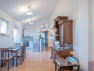 € 340,000Duplex Poreč, Luka, PorečFor sale is a charming and carefully maintained house in a quiet village, just 4 km from the center of Poreč and the sea. Built in 2003, completely renovated in 2018, it is sold in excellent condition and is ready to move in - without additional investment. The house is spread over two floors, with an additional basement. On the ground floor there is a cozy living room with a modernly equipped kitchen and dining room, a guest toilet, a storage room and a technical room. The living area leads to a large covered terrace, ideal for relaxing and socializing. Upstairs there are three bedrooms and a