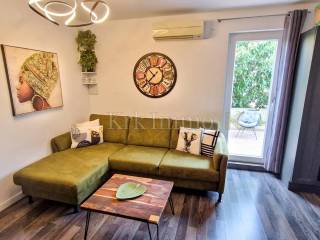 For sale is a modern apartment in a quiet part of the town of Krk, only 500 meters from the coast and the city center. The apartment has a total area of 55 m2 and is located on the ground floor of a multi-family building.