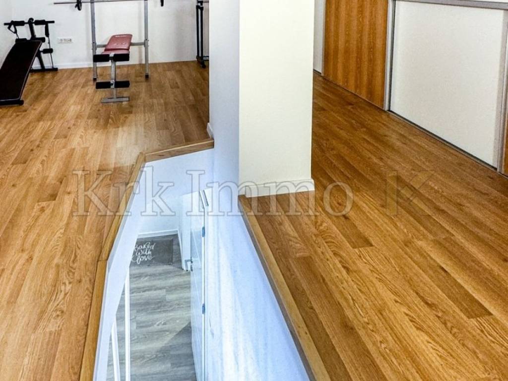 A fully equipped kitchen, dining area, and a cozy living room open onto a covered terrace, ideal for morning coffee or evening sunsets. The internal staircase leads to a gallery where there is a study, a reading corner, and an exercise area – details that make this property on the island of Krk a unique home for everyday living or tourist rental.