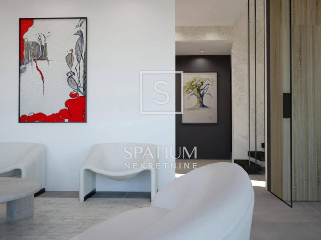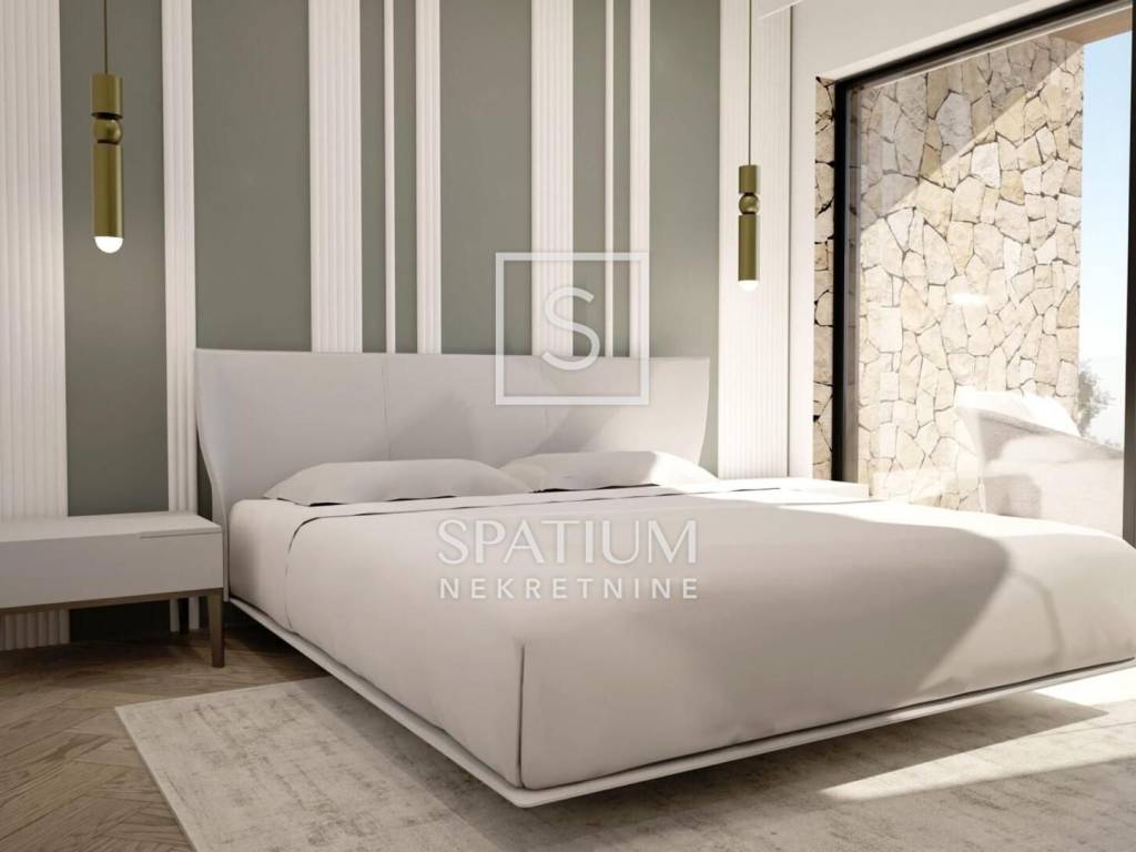 The interior elegantly combines modern architecture with traditional elements and is thoughtfully designed to provide maximum comfort and privacy. On the first floor, there are three spacious bedrooms, each with its own en-suite bathroom. The ground floor comprises an open-plan living room, dining area, and fully equipped kitchen, with access to a spacious 73 m² terrace. Additionally, there is a guest bedroom with a bathroom, a staff bedroom, and a wine cellar, while beneath the pool level lies a glass sauna with breathtaking sea views.
