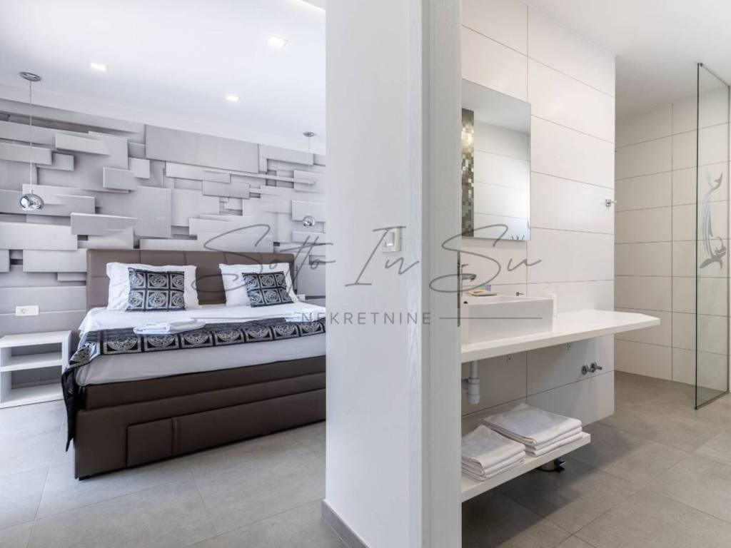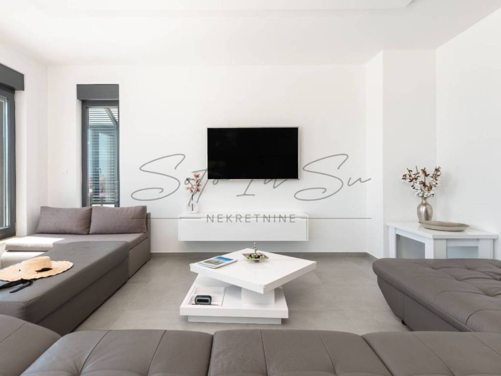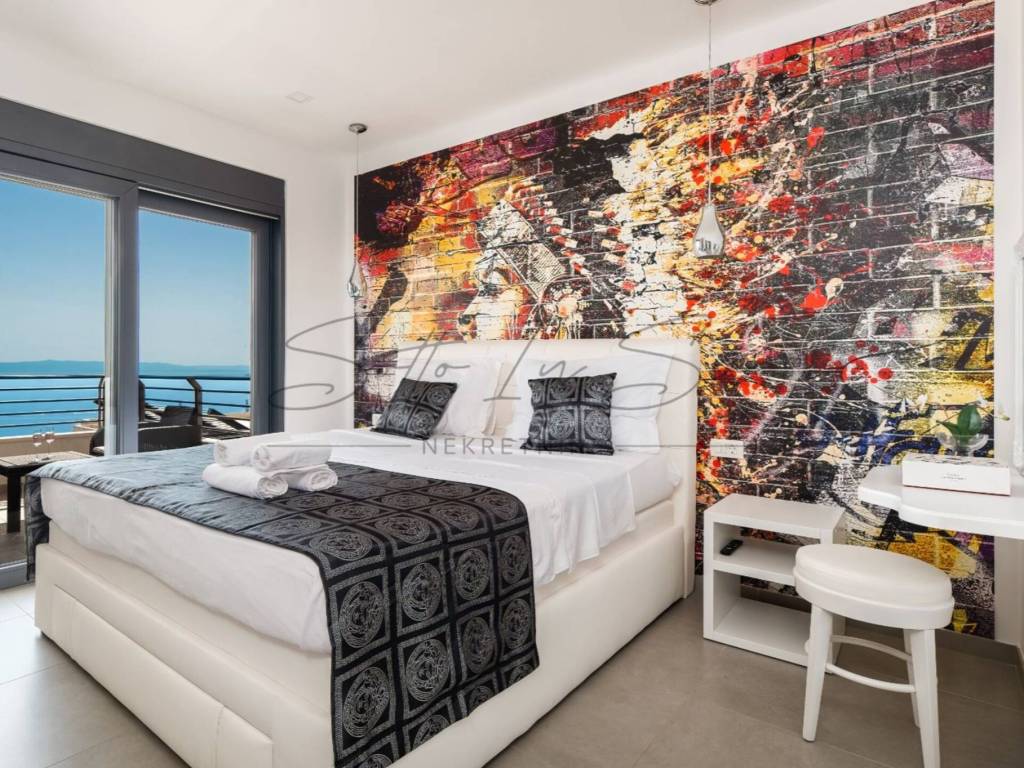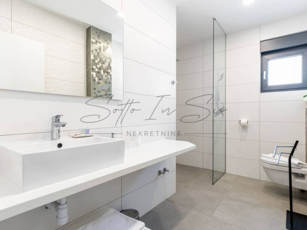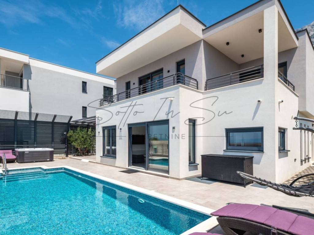 A villa is for sale in Makarska, located in the Veliko Brdo area. The property has a footprint of 124 m and a total living area of 248 m, situated on a 324 m plot. The villa is 1.8 km from Ratac Beach and approximately 4 km from the center of Makarska.