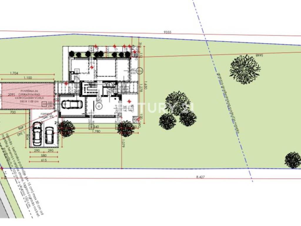 Para el terreno se ha elaborado un proyecto y se ha obtenido la licencia de construcción para edificar una moderna casa familiar con una superficie bruta de 332 m2 (neto 272 m2), que se distribuye en tres plantas – sótano, planta baja y primer piso. Es posible comenzar la construcción de inmediato.