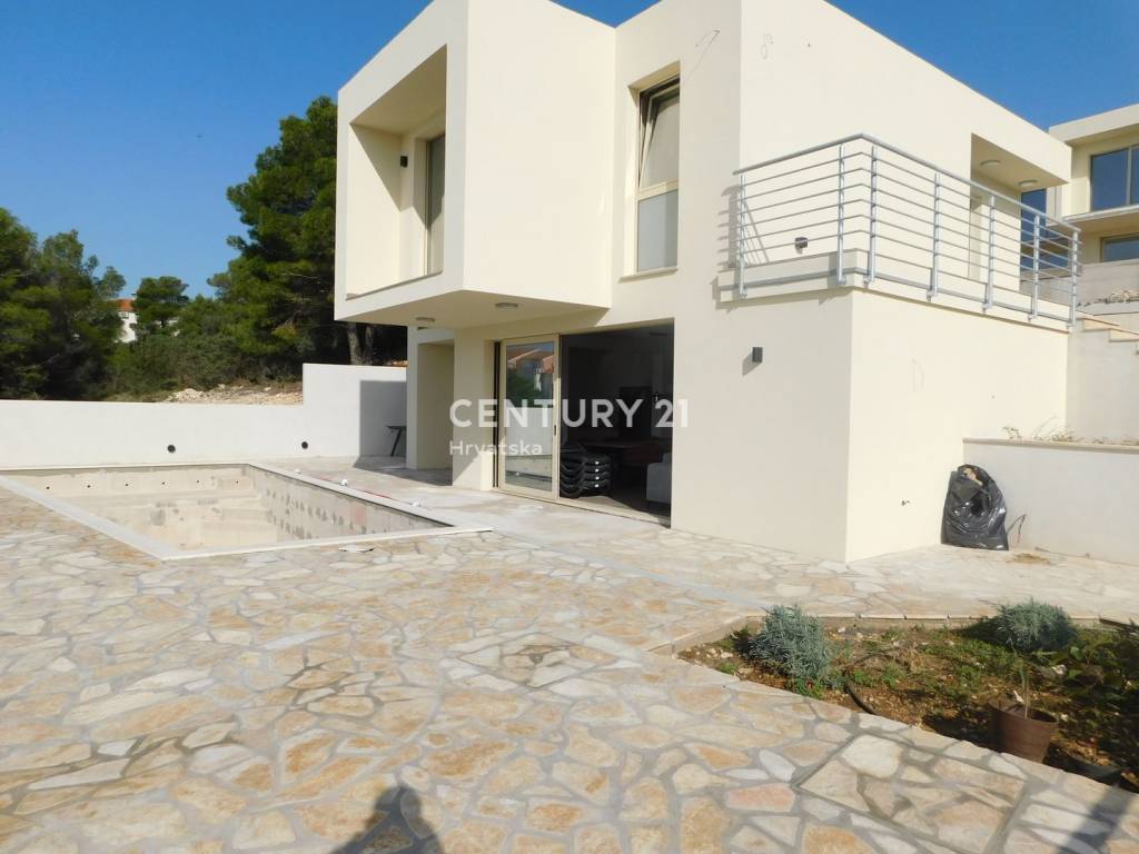 Ova prostrana kuća s tri spavaće sobe orijentirana je prema jugu, čime osigurava obilje prirodne svjetlosti tijekom cijelog dana. Uživajte u blagodatima sunčanih dana s terase ili balkona, dok se opuštate uz bazen s pogledom na more.