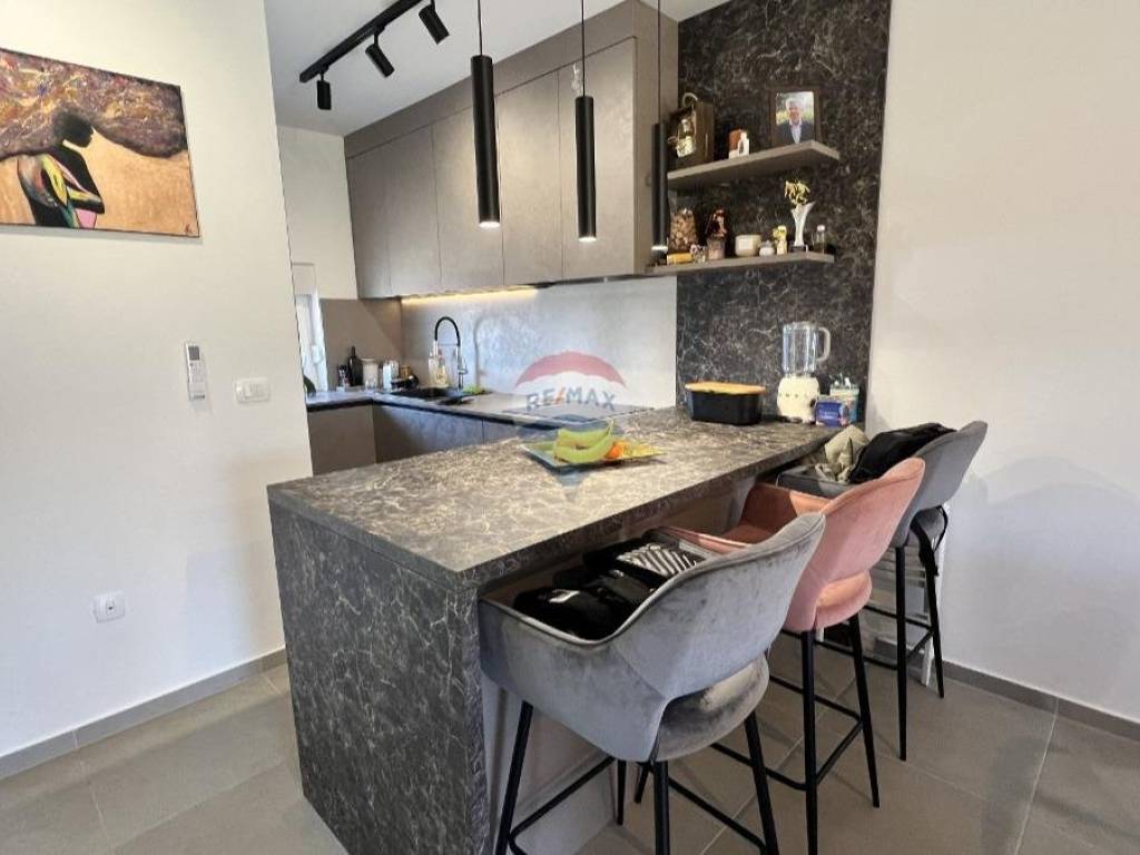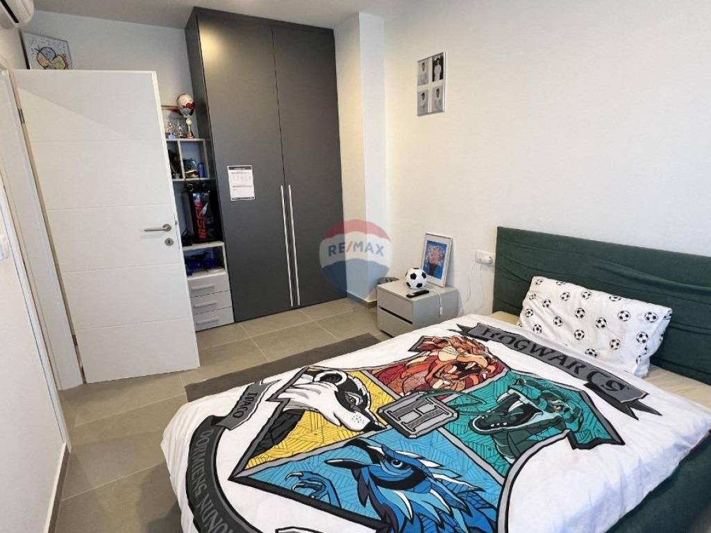 The apartment is equipped with quality furniture, sanitary ware and joinery, and is sold fully furnished. Heating is provided by an integrated underfloor heating system, while air-conditioning units ensure cooling and additional temperature regulation, providing comfort throughout the entire year. The property includes two parking spaces.