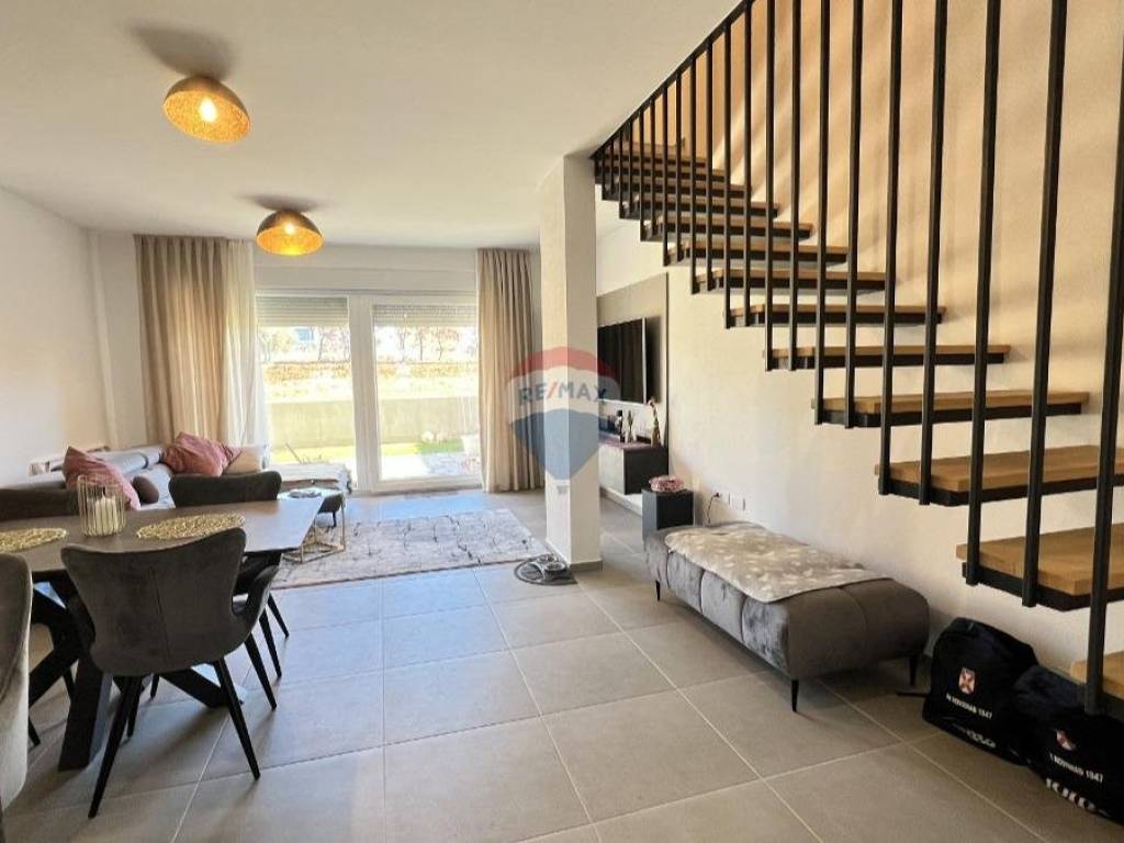 RE/MAX Centar nekretnina presents an attractive and modernly furnished apartment in Novigrad, located in a quiet area, 1,700 m from the town centre and 1,300 m from the sea and well-maintained beaches. The apartment, with a total area of 124.56 m², extends over three levels: ground floor, first floor and second floor.