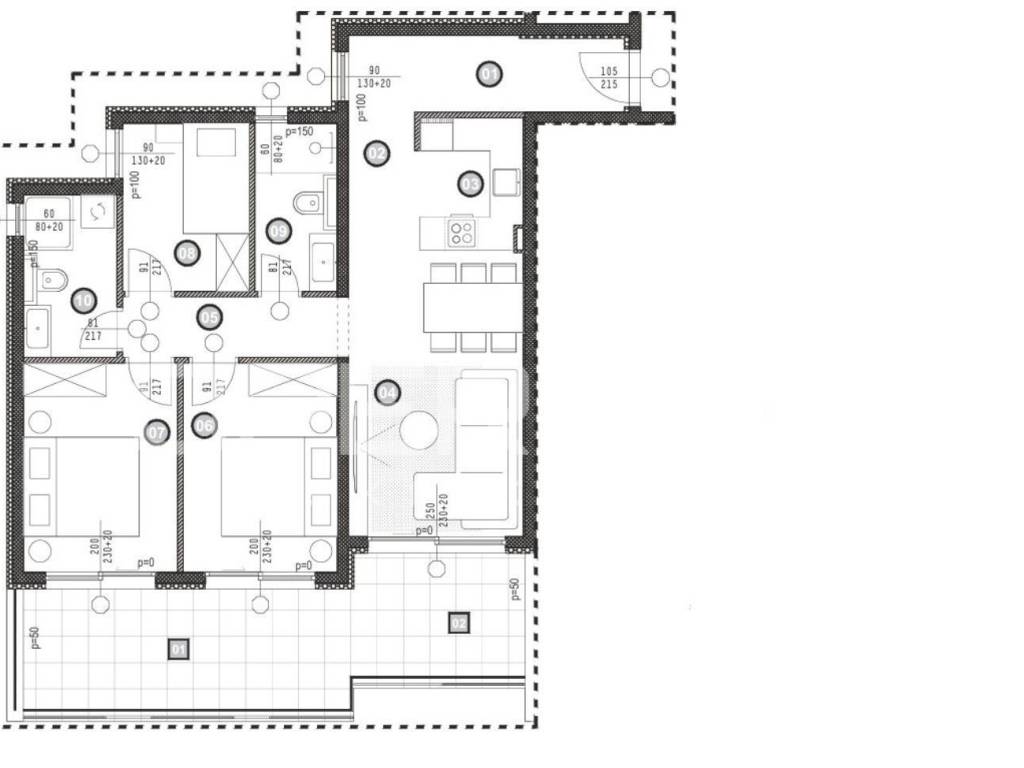 The finishing and equipment reflect a high standard of construction. All rooms are air-conditioned for comfort in warmer months and transitional periods. Underfloor heating is installed in the bathrooms for additional comfort. The exterior joinery is aluminum with electronic shutter lifts. Floors in the living area and bedrooms are high-quality parquet, while the bathrooms feature premium ceramics and modern sanitary ware. The apartment feels fresh, durable, and easy to maintain.