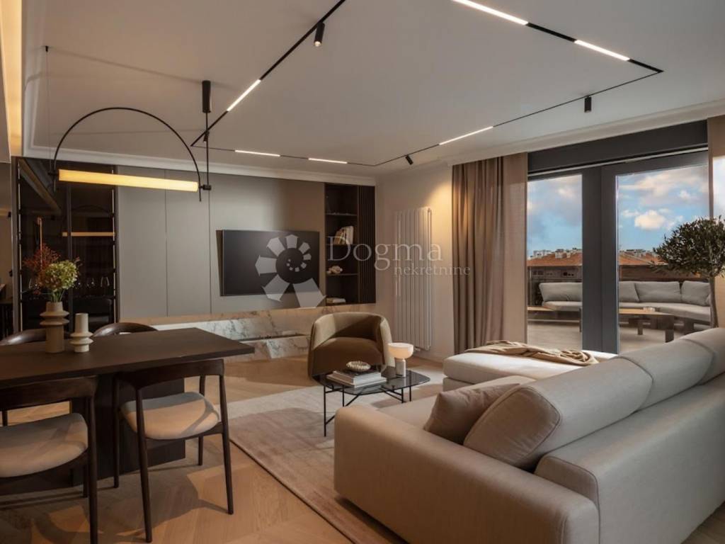 A unique and luxurious penthouse complex occupying the entire floor of a modern residential building is for sale, located in a quiet and sought-after area of Zagreb.
