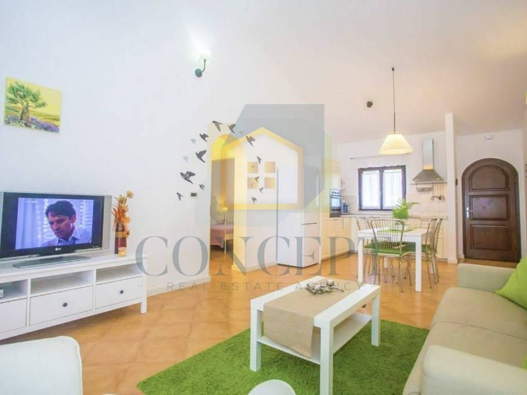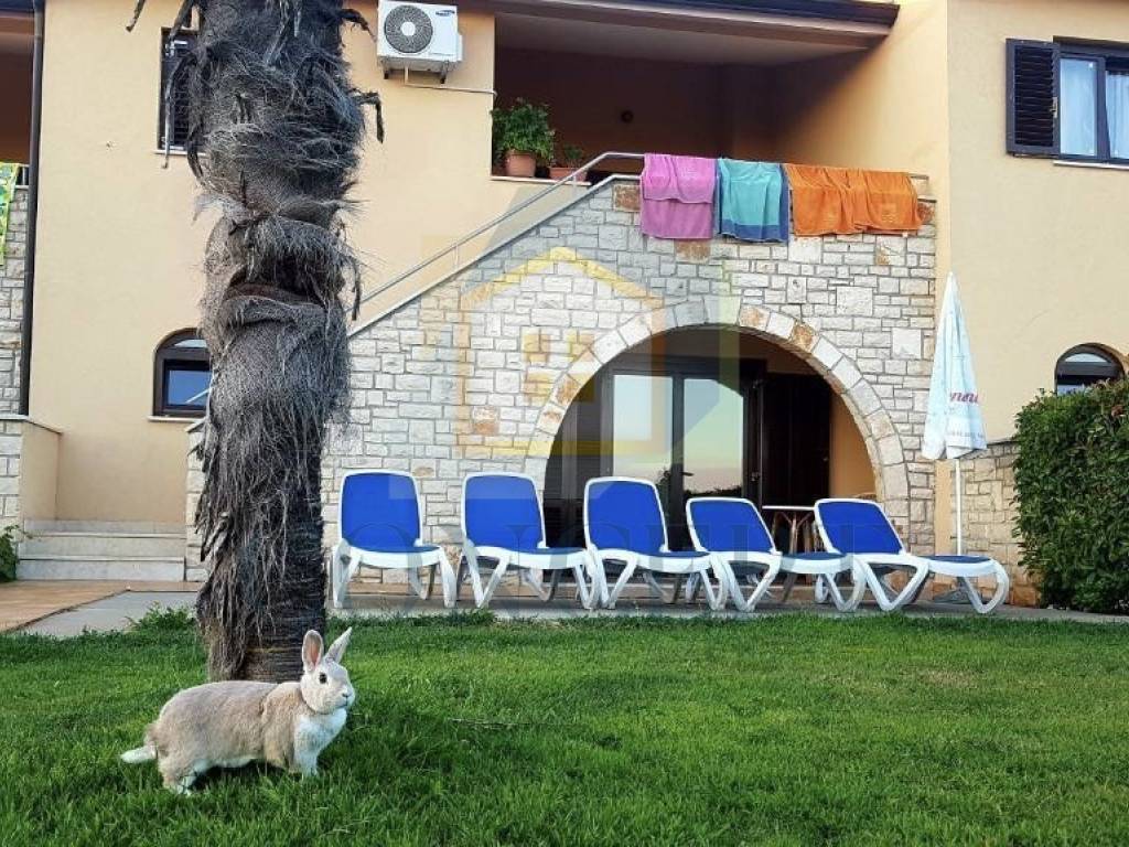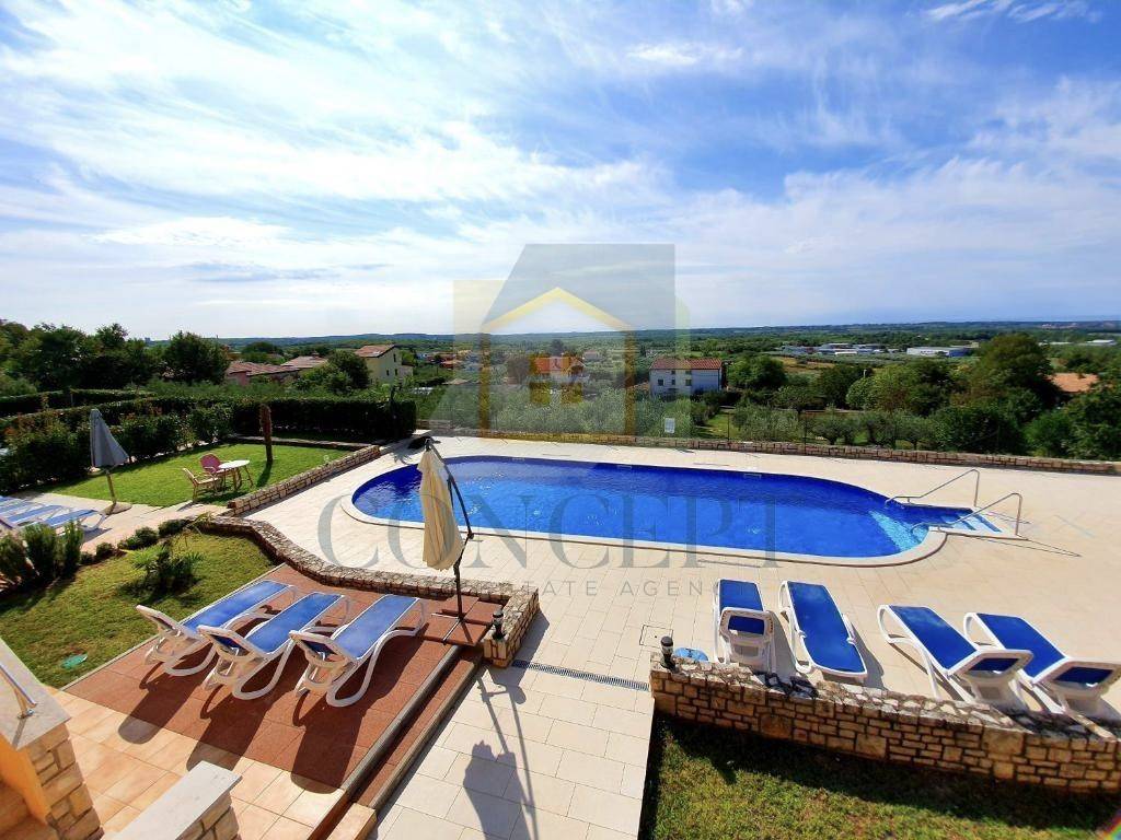 In a quiet location just 12 km from the sea and Poreč, a charming terraced house is for sale, part of an organized complex with a shared pool.