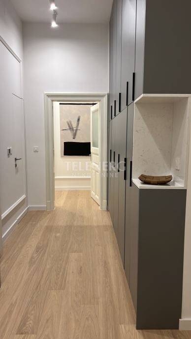The apartment consists of an entrance hall, kitchen/dining room and living room, two bathrooms, and three bedrooms with walk-in closets, and a storage room with a laundry room. Two men's rooms are separated from the rest of the apartment by a hallway for quietness and privacy. In addition to two small rooms, the apartment also has a large large room right next to the living room, and it has a large walk-in closet with custom-made wardrobes from floor to ceiling, and its own bathroom equipped with a shower and toilet. Multiple air conditioning units cover the entire apartment, but each bedroom has its own, as well as a gas central heating system. There is also underfloor heating in the bathrooms.