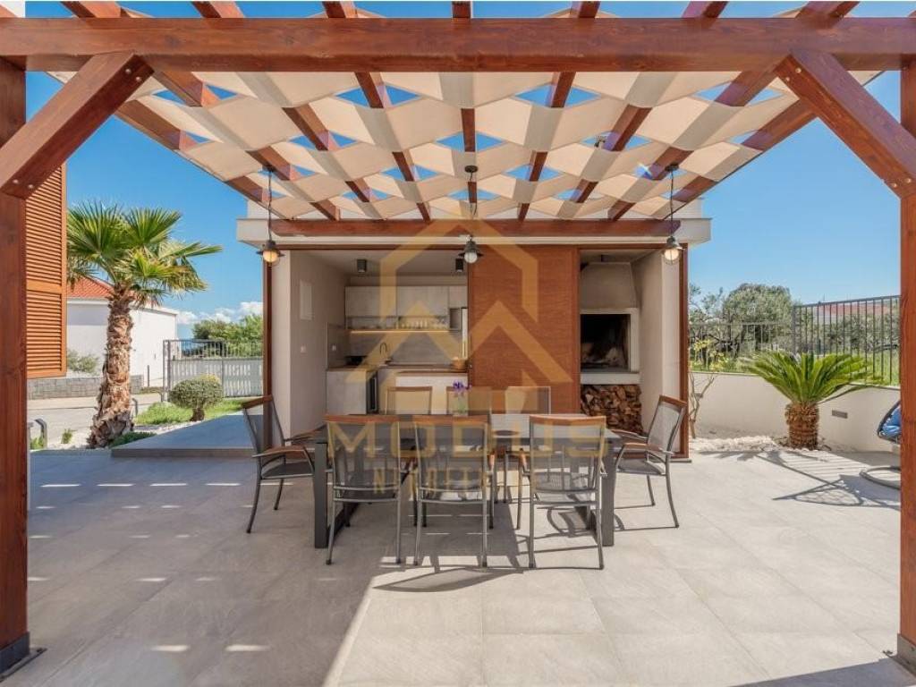 Dominantni dio eksterijera čini privatni grijani bazen sa sunčalištem i ljetna kuhinja s roštiljem, stvarajući savršenu oazu za opuštanje.