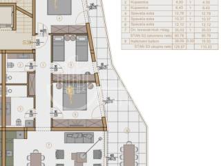 Ukupne površine 110,33 m (bruto 129,87 m), stan se ističe izuzetno funkcionalnim rasporedom i vrhunskom kvalitetom izvedbe.