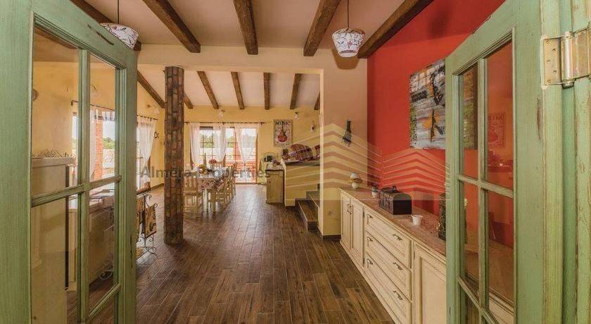 It consists of a living room with kitchen and dining room, 3 bedrooms and 2 bathrooms. There is a tennis court next to the house.