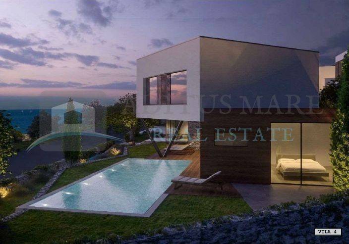 LUKSUZNE VILLE-VODICE-NOVOGRADNJAI FAZA PROJEKTA:Izgradnja Vile 3-TIA i Vile 4-DIVA započete su te je predviđeni završetak radova ljeto 2024.II FAZA PROJEKTA:Izgradnja Vile 1-PATRICIA i Vile 2-ANICA planirani početak je krajem godine te se završetak radova predviđa za ljeto 2025.Luksuzne vile koje stavljamo u ponudu biti će građene po poslijednjem standardu gradnje, izuzetno kvalitetnim i luksuznim materijalima kao što je i sam projekt osmišljen.Zgrade će biti kombinacija betona i opeke sa nosivim zidovima debljine 25cm.Fasada će biti djelomično ventilirana, sa dekorativnom oblogom od Trespa ili MaxCompact ploča a dijelom ETICS sustav.Vanjska stolarija će biti aluminijska.Velike klizne stijene u prizemlju biti će visine 300cm, od poda do stropa, sa low-e troslojnim staklima.Na katu će biti ugrađene grilje, obložene dekorativnim oblogama u boji ventilirane fasade.Podovi će biti obloženi luksuznom keramikom i parketom.Kuće će u cijelosti biti klimatizirane (multi-split sustavom u svim prostorijama), dok će se grijanje i priprema tople vode vršiti putem dizalice topline.U kupaonicama će biti ugrađeno električno podno grijanje.Također je planirana izvedba automatizacije rasvjete (SmartHome) i pripreme za ozvučenje ugradbenim zvučnicima.Na krovovima je planirana priprema za fotonaponske ćelije, te nakon izdavanja uporabne dozvole, postoji i mogućnost ugradnje istih.Bazeni su unutarnjih dimenzija 8x4 m i dubine 1,25 m.U bazenima će se izvesti kompletna priprema za grijanje bazena.Odvodnja će biti regulirana sustavom Bio-jame.Navedene i prikazane cijene ne uključuju namještaj.* Bogata hortikolutura i okolina u kojoj se kuća nalazi, pogled na more i otočje, pružit će budućim vlasnicima pravu oazu mira kako za život tako i za odmor.Kuća je od plaže udaljena 700m, od centra grada Vodica 1140m dok je od Tribunja udaljena 1500m.U blizini se nalaze mnogobrojni kafići i restorani, prehrambeni dućani te autobuska stanica.*DOSTUPNO ZA PRODAJU:VILLA 4-DIVA Villa se prostire na dvije etaže te raspolaže sa netto korisnom površinom od 236,06m2. -Vila se nalazi na parceli 872m2. PRIZEMLJE: -Ulaz na parcelu, dvorište, parking za dva automobila -Ulazni prostor u kuću, WC, spremište, hodnik, kuhinja sa blagovaonom i dnevnim boravkom sa izlazom na dvije natkrivene terase i bazen, Master spavaća soba sa garderobom i kupaonicom. I. KAT: -Stubištem dolazimo na 1. kat kuće gdje hodnik povezuje vešeraj, tri spavaće sobe od kojih je jedna Master spavaća spba sa garderobom i kupaonicom dok druge dvije imaju svoje kupaone. CIJENA: 1.250.000,00€Za sve ostale informacije slobodno nas kontaktirajte.Projekt i dokumentacija dostupna na uvid.Interni ID agencije: 716-1