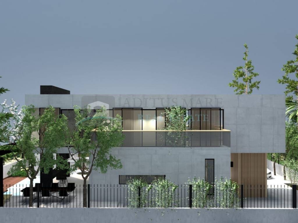 U prizemlju se nalazi kuhinja, blagovaonica, dnevni boravak, WC, ostava te prostrana terasa uz koju se prostire bazen.