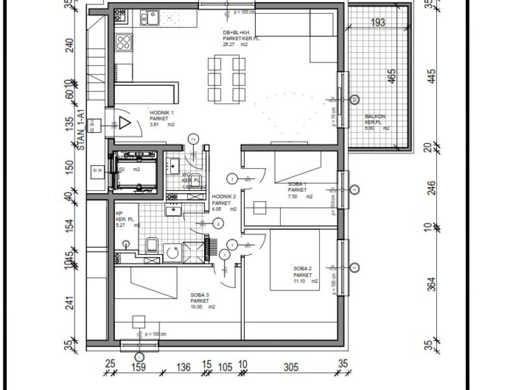 – Balkon: 8,90 m2 (obračunski 4,45 m2)