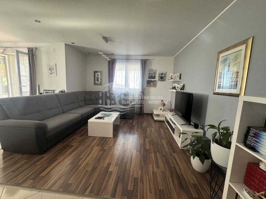 We mediate in the sale of a house with two nicely decorated apartments with separate entrances. The house is located on a plot of 648 m2, and its living area is 155 m2. On the ground floor, there is an apartment of 64 m2 consisting of an entrance hall, laundry room, living room, kitchen and dining room, bathroom, and two bedrooms. Underfloor heating was installed in the bathroom, and the apartment was completely renovated in 2022. A separate external staircase leads to the first floor, where there is an apartment of 91 m2, consisting of an entrance hall, hallway, three bedrooms, bathroom, toilet, and a spacious living room, kitchen and dining room. From the living room and from the bedroom there is a balcony with a view of the sea. There are 3 air conditioners installed in the house. What makes this house special is the spacious garden where the future owner can build a swimming pool. In addition to the beautiful garden, there are parking spaces for several cars in front of the house. There is a possibility for the future owner, to build another floor on this house. We must emphasize that the house is located 300 meters from the sea and close to all tourist facilities. Do not miss this unique opportunity and contact us.