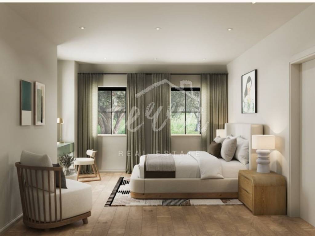 The staircase leads to the first floor, where there are two spacious bedrooms, each with its own bathroom, and a terrace.