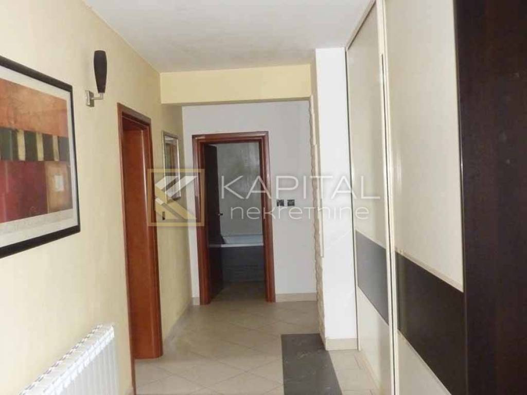 Rijeka, Turkovo luxury floor of an urban villa on the second floor in a quiet cul-de-sac. The floor is spread over 204 m2. It has its own garden with two parking spaces of approximately 150m2, basement of 22m2. A property that exudes luxury and quality. Each room is very comfortable, equipped with designer furniture and top quality materials. 3 bedrooms (30 m2, 18 m2, 10 m2), two bathrooms, a large hallway with fitted wardrobes and a one-room large living room with kitchen and a spacious loggia of 15 m2 with a view of the entire Kvarner. Central heating and air conditioning. All fixed pieces of furniture and equipment remain in the price. A rarity in real estate! For all information call 091 / 450-5150.