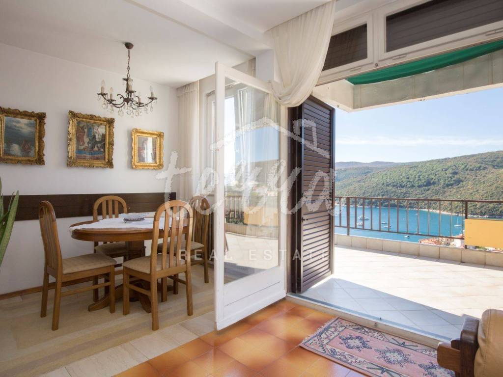 On the second floor, there is a spacious apartment with a large terrace, from which there is an open view of Rabačka Bay and the sea, perfect for morning coffee and enjoying the beautiful view.