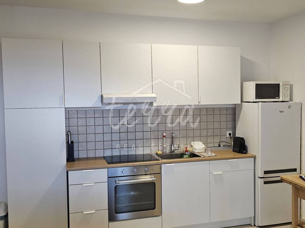 New modern kitchen with white elements, equipped with all necessary appliances.