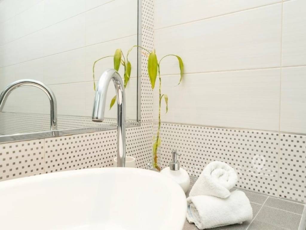 Modern and comfortably furnished bathroom.