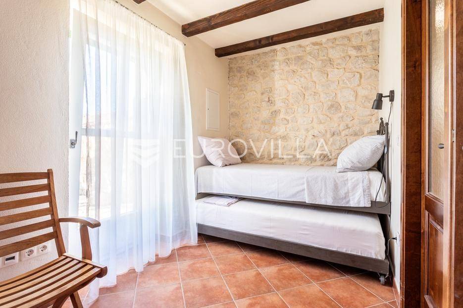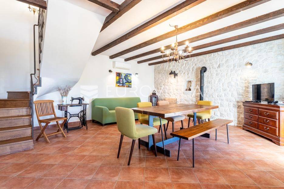Dugoročno se iznajmljuje se kamena kuća s grijanim bazenom u mirnom mjestu nedaleko od Marine. Objekt ukupne površine 120 m² sastoji se od dvije etaže: u prizemlju su dnevni prostor otvorenog koncepta, terasa, jedna spavaća soba i toalet, dok se na katu nalaze još dvije spavaće sobe, svaka s vlastitom kupaonicom.Kuća je južno orijentirana, klimatizirana i potpuno opremljena, odmah useljiva, a u dvorištu je osigurano više parkirnih mjesta. Grijani bazen i sunčalište pružaju mogućnost korištenja tijekom cijele godine, dok se u pomoćnoj prostoriji nalazi i kamin.Mirna lokacija u blizini plaža i svih potrebnih sadržaja čini ovu nekretninu izvrsnim izborom za ugodan boravak.Za sve ostale informacije i upite, stojimo Vam uvijek na raspolaganju.