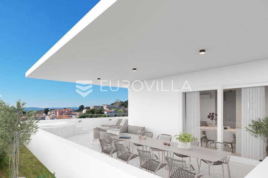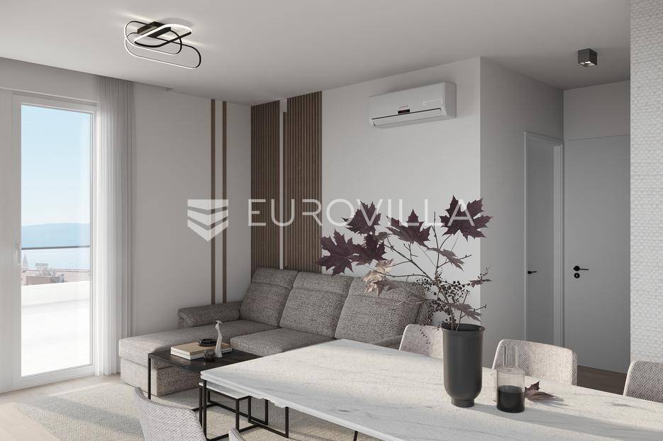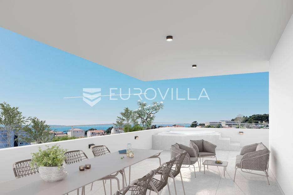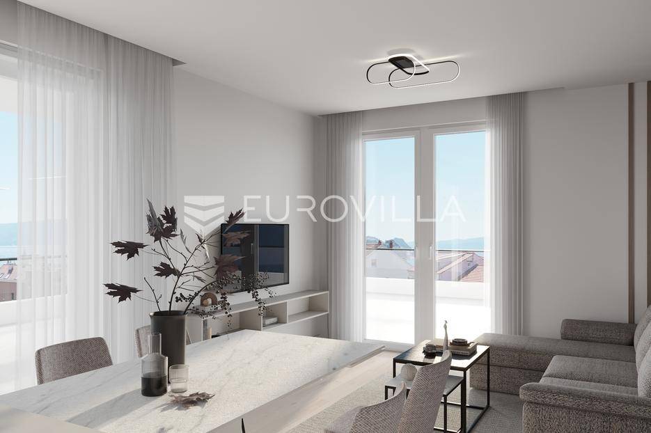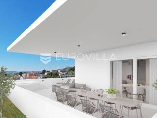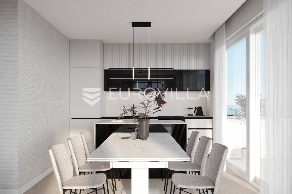 Uživajte u vrhunskom luksuzu ovog izvanrednog dvosobnog stana u Stobreču, smještenog na petom katu moderne novogradnje. Ovaj penthouse pruža nevjerojatan panoramski pogled na more s prostranog balkona, loggie i terase, idealnih za opuštanje i uživanje u mediteranskom stilu života. Stan se prostire na 130.90 m2, obuhvaćajući dvije elegantne sobe i dvije luksuzne kupaonice, kuhinju, dnevni boravak, blagavaonu i garderobu, dizajnirane s pažnjom na detalje i vrhunskom kvalitetom materijala.Orijentacija stana na sve četiri strane svijeta (sjever, istok, jug i zapad) osigurava obilje prirodnog svjetla tijekom cijelog dana, stvarajući ugodnu i svijetlu atmosferu. Moderan dizajn interijera savršeno se uklapa u vanjski ambijent, a prostrane površine pružaju dovoljno prostora za obiteljski život i zabavu.Smješten u mirnom dijelu Stobreča, ovaj stan nudi savršenu kombinaciju privatnosti i blizine svim važnim sadržajima. Uživajte u blizini plaža, restorana, trgovina i ostalih pogodnosti, sve na dohvat ruke. Ova nekretnina predstavlja izvanrednu priliku za one koji traže luksuzan dom s prekrasnim pogledom i vrhunskom lokacijom.Za sve ostale informacije na upit.