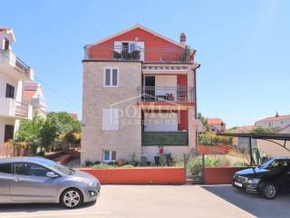 A beautiful apartment in the center of Vodice, in a residential building, apartment / Penthouse, usable area 114.48m2, quite airy and comfortable layout. On the east side, the apartment has a large, spacious living room with a dining room and a kitchen in one and an exit to a covered terrace with a beautiful view of the sea, one small bathroom and a hallway, three bedrooms, two bedrooms with their own wardrobes, a large bathroom, and exit to the terrace on the west side with a view of the city center. The apartment is equipped with air conditioning and central heating. The apartment has two parking spaces.