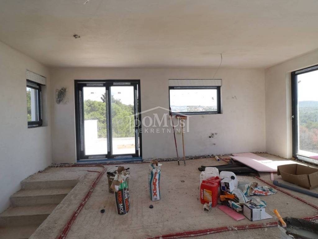 Primošten, new construction, residential building with 5 residential units, on 4 floors: ground floor + 1st floor + 2nd floor + attic. The building has a modern appearance, will be equipped with underfloor heating in the bathroom and living room, high-quality ceramics and sanitary ware, air conditioning for heating and cooling in every room and living room, PVC carpentry with mosquito nets, electric. blind lifters, styrofoam facade 10 cm.