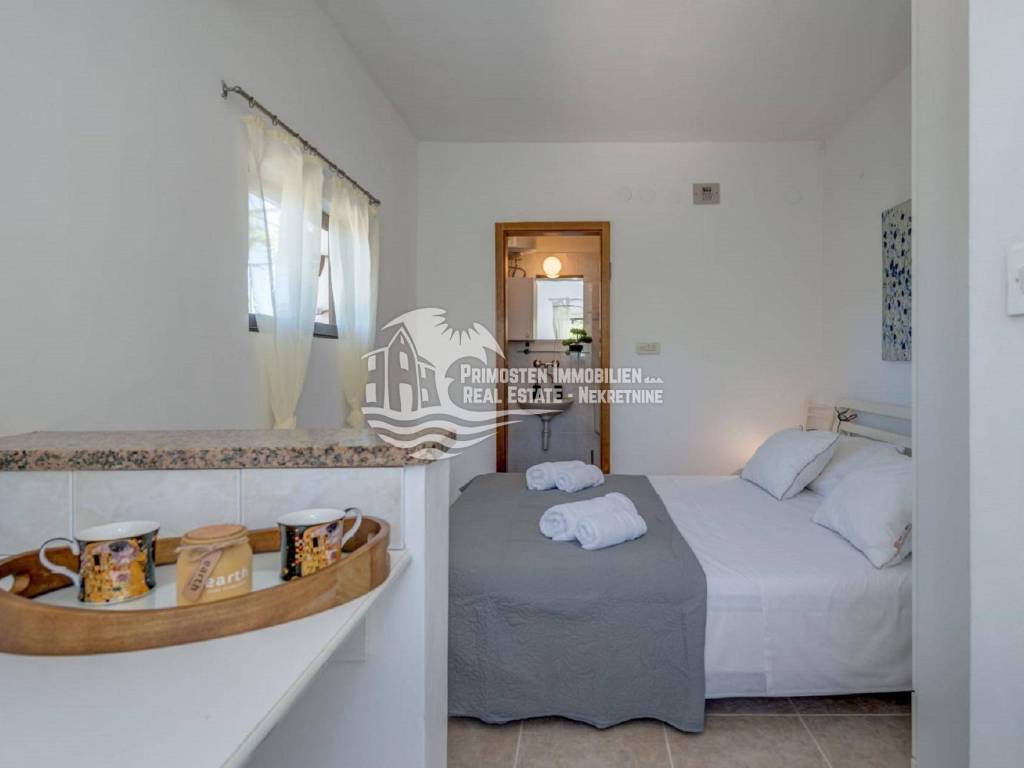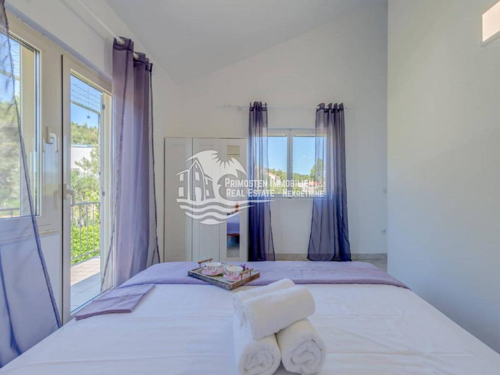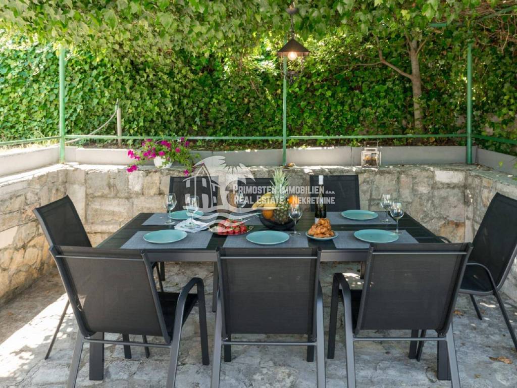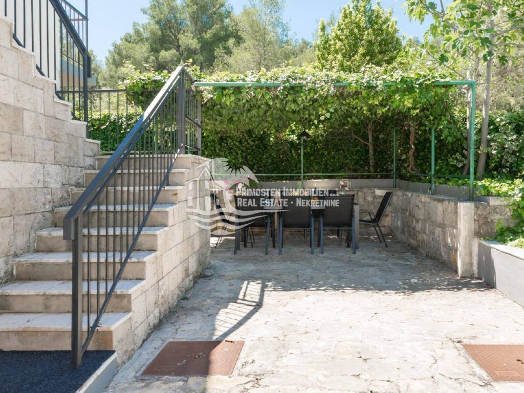For sale is an apartment house in an exceptionally attractive location in Slatine on the island of Čiovo, situated just 100 m from the sea and a beautiful beach. The property has a total living area of 170 m² and is located on a 602 m² plot. It consists of two separate sections: an older part of the house spread over two floors, and a fully renovated part with furnished apartments.