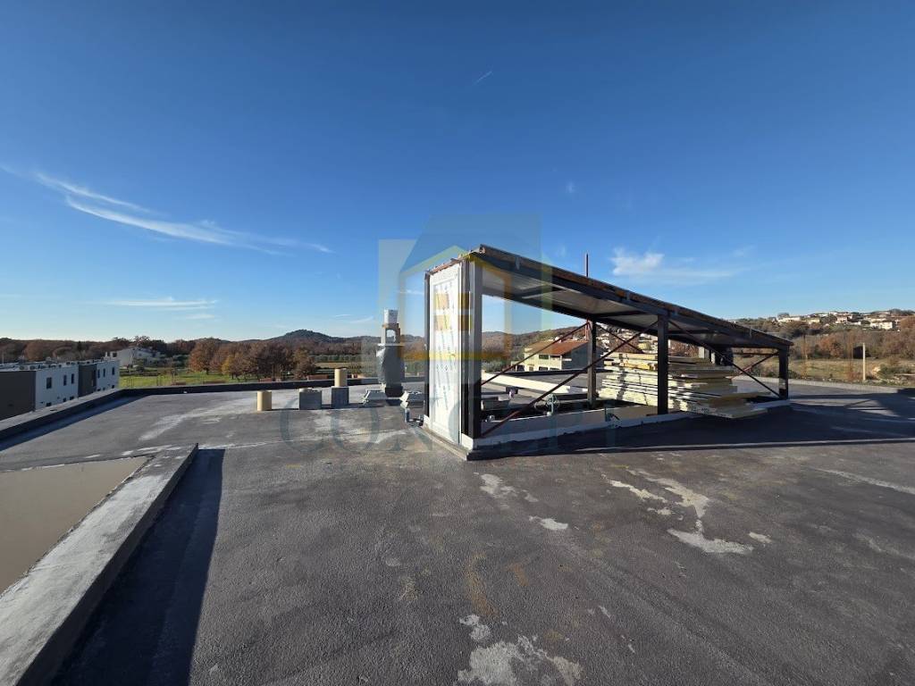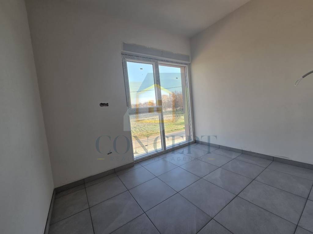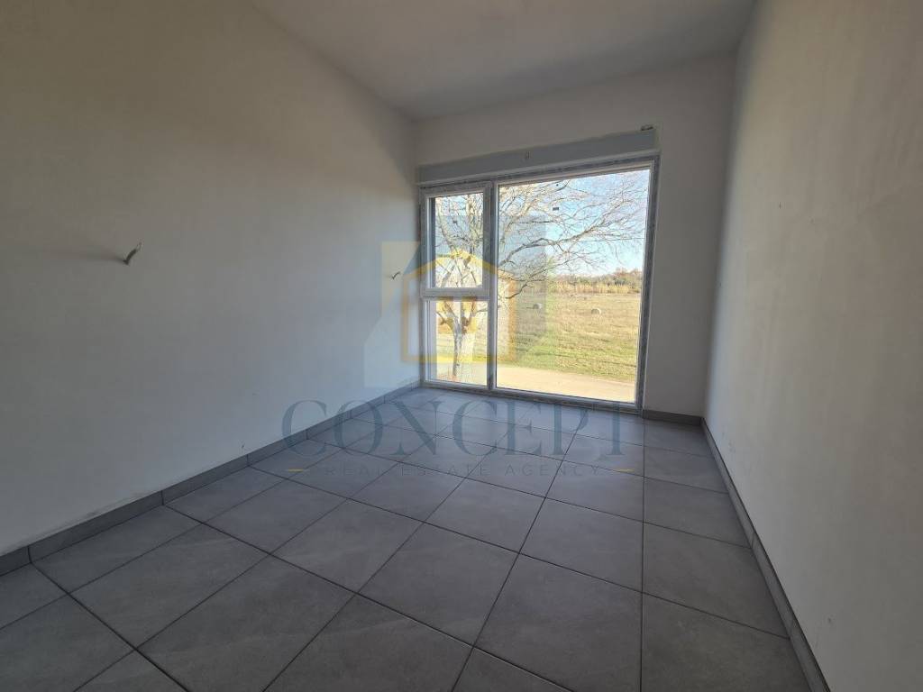 In an exceptionally peaceful and pleasant location, just 3 km from Poreč and the sea, an apartment is for sale in a building with a total of five residential units. The apartment is located on the first floor, has an area of 74.23 m, and includes a rooftop terrace of 62.3 m, as well as one parking space.