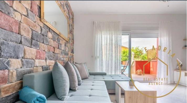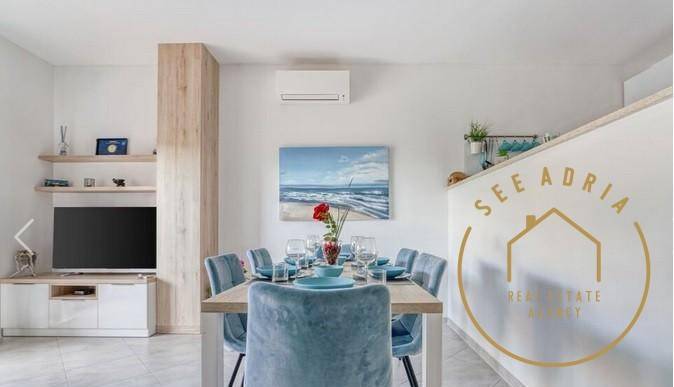 House for sale of 91.44 m2 + 66 m2 garden. The house is located in a quiet and peaceful Istrian village Valica. The ground floor has a living room, kitchen, bathroom and a larger terrace as an extension of the "open living room" with a glass wall. Upstairs are two bedrooms and a bathroom. The floors are connected by an internal staircase. One of the most beautiful beaches of the Umag Riviera, Kanegra is only 2 km from the property, and a golf course and the elite Kempinski Resort are only 6 km away.