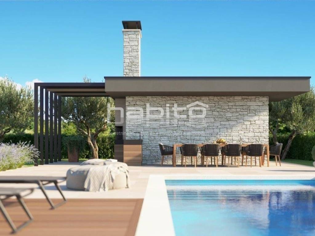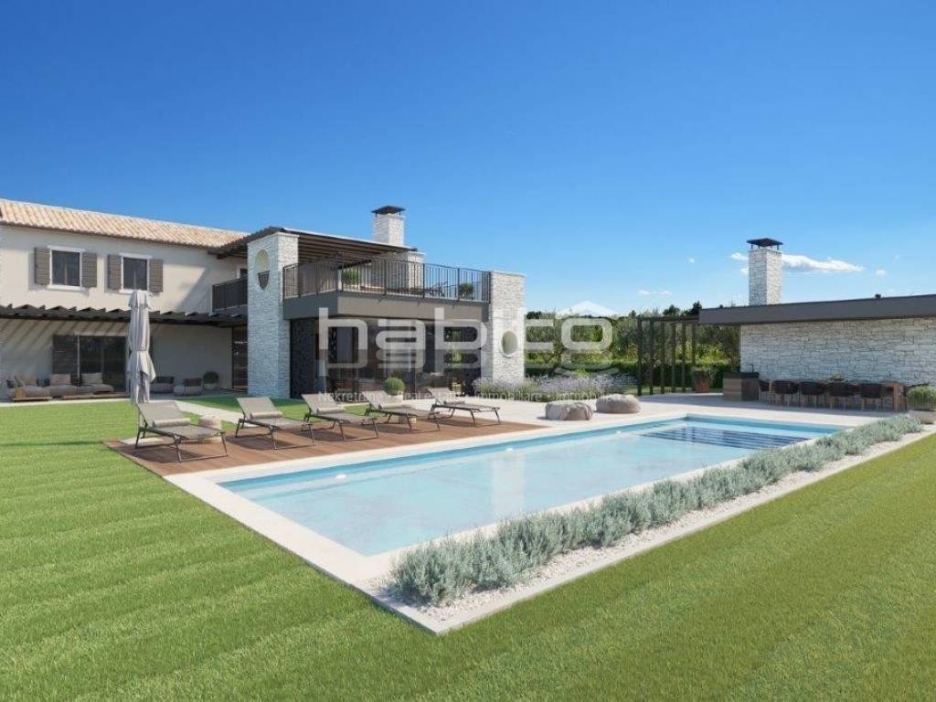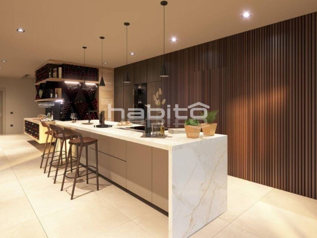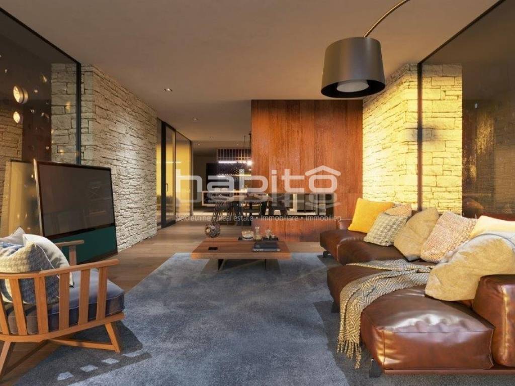 A luxury villa for sale, a combination of modern and Mediterranean style, located in a quiet location with a view of the sea. The house of 270 m2 contains 4 bedrooms, 4 bathrooms, guest toilet, open space kitchen, dining room and living room with fireplace. The house also offers a covered parking place for two cars and a summer kitchen in the yard next to the 50 m2 swimming pool. The house has underfloor heating via a heat pump and is fully air-conditioned.