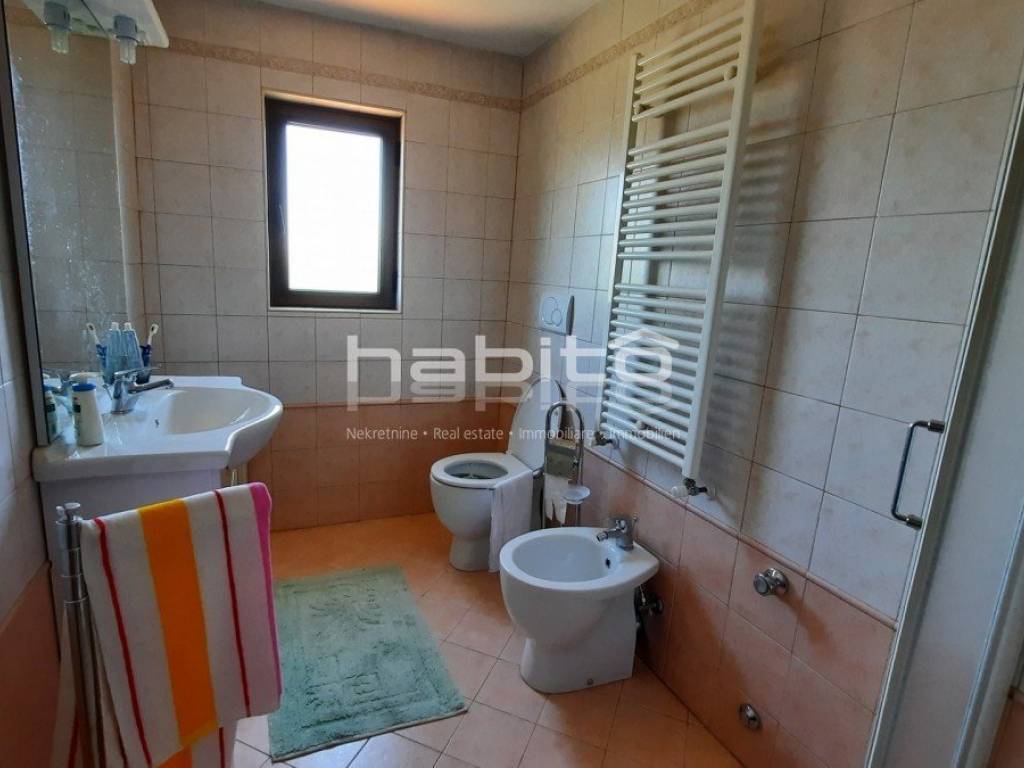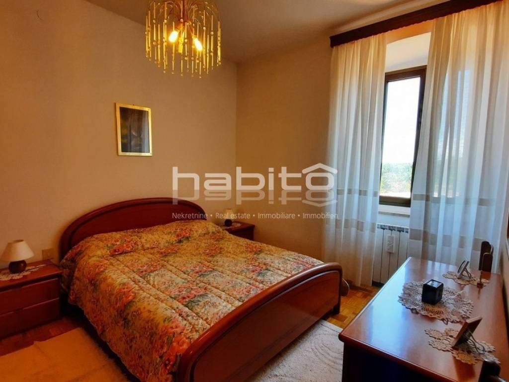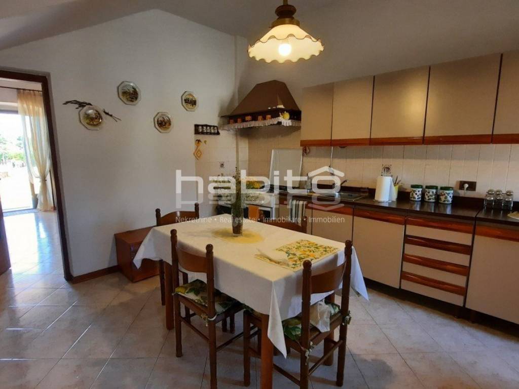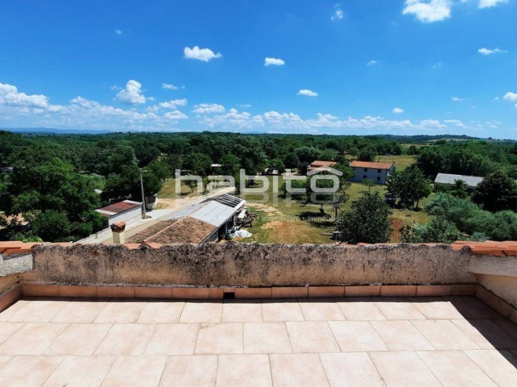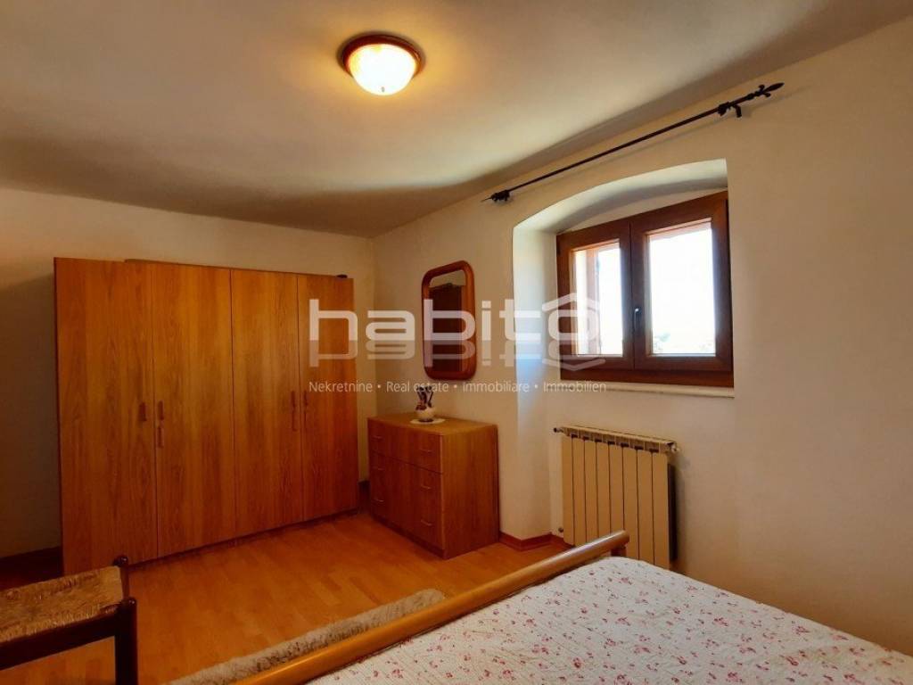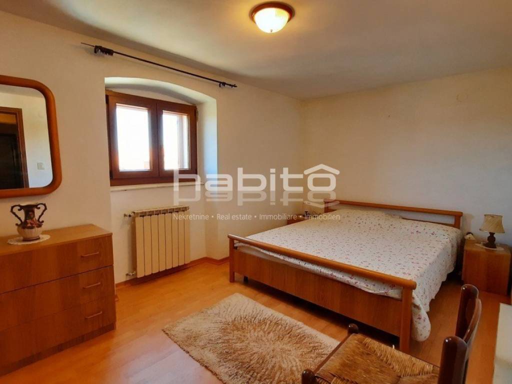 Not far from the center of Kastelir is located this stone house completely renovated with a smaller garden. It is located only 7 km from the sea and 10 km from the city of Porec. The house consists of a ground floor, two floors and an attic with a total net area of 182 m2. The ground floor contains a kitchen, living room and guest toilet, on the first floor are two bedrooms and a bathroom, on the second floor two more bedrooms and a bathroom while in the attic there is a terrace and two storage rooms. In the garden in front of the house there is a garage for one car, while behind the house there is a beautifully landscaped garden. The house has central heating on oil. In addition to the house, there is also agricultural land, a forest of 7000 m2, which is located 10 minutes' walk from the subject property.