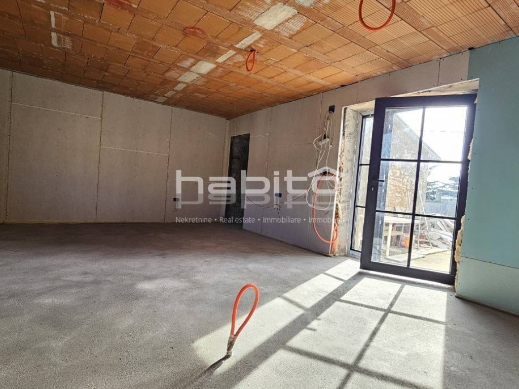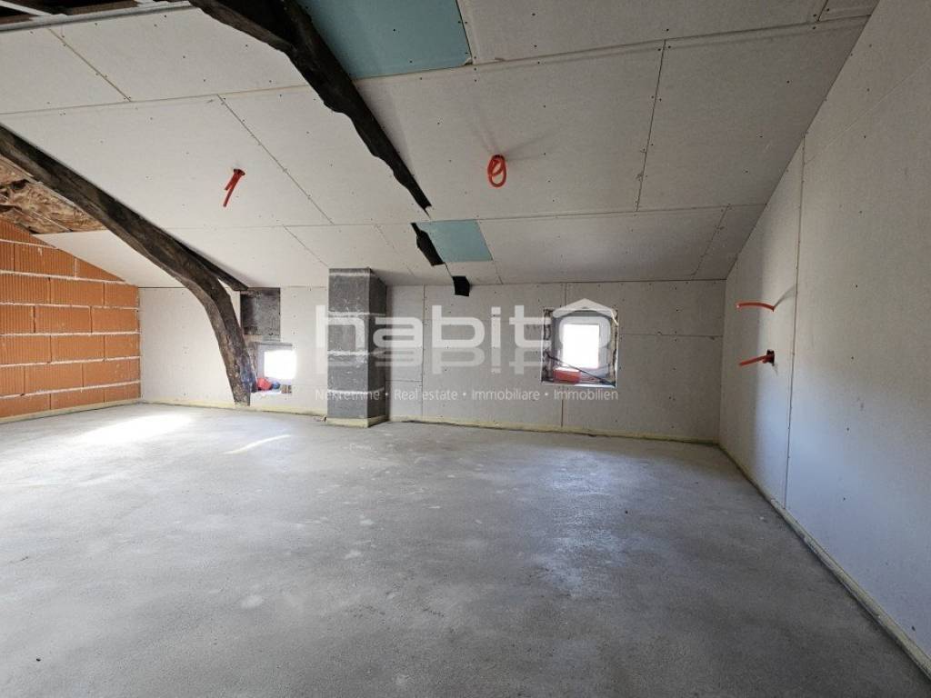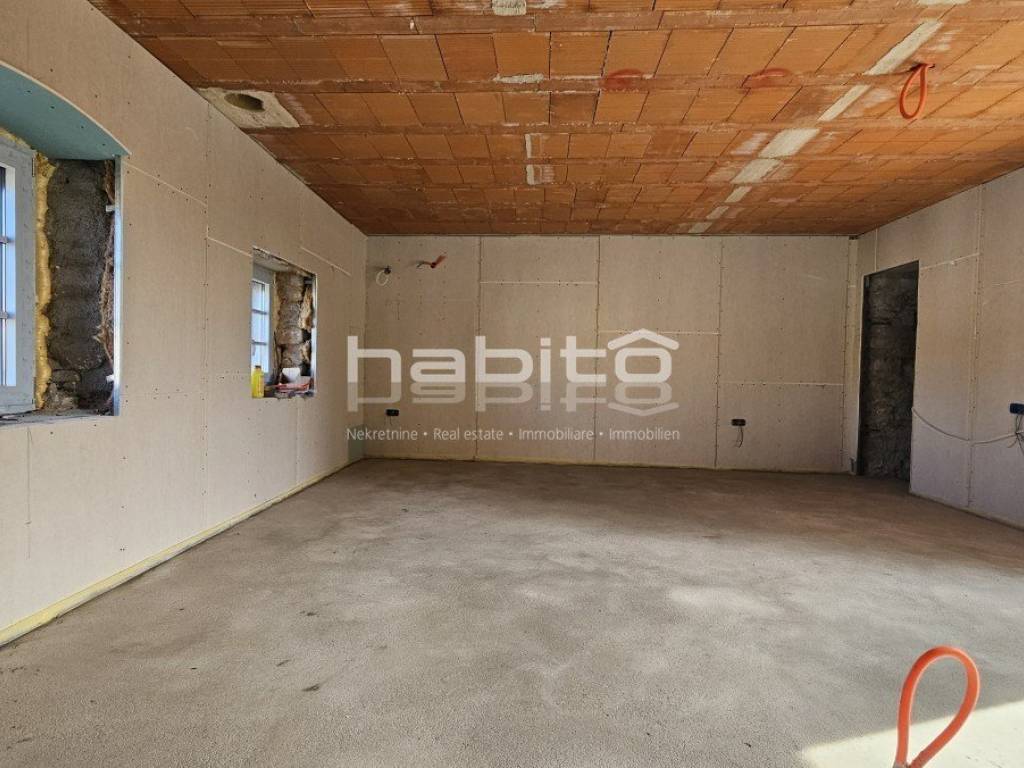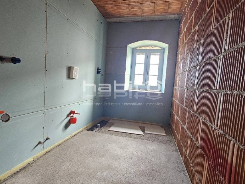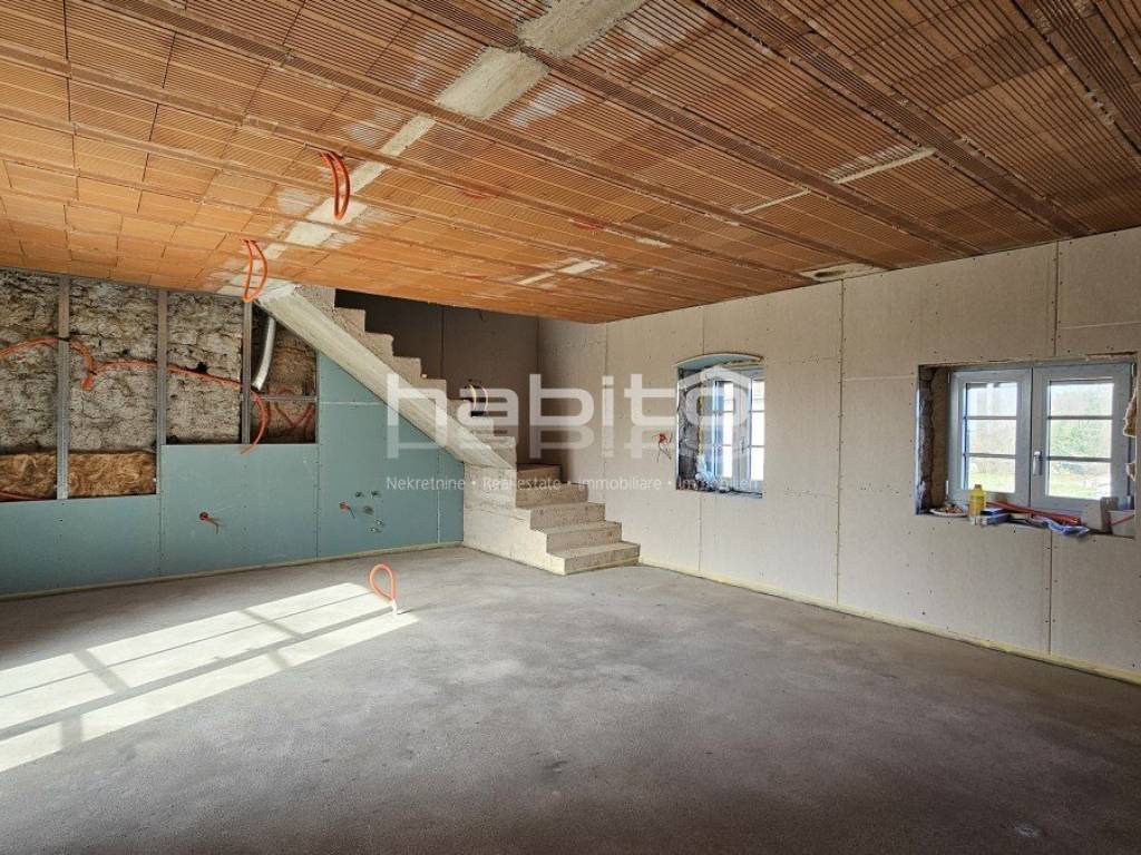 This is the last house in a row that was renovated in 2023 to the "roh bau" phase. The house offers 210 m2 of living space and 234 m2 of garden (with an outbuilding of approx. 35 m2 of gross area) which is located right across the street from the house. The ground floor of the house contains two large spaces, cellars that need to be renovated. The first floor of the house is accessed by an external stone staircase, where there is a spacious terrace with an entrance to the living area which offers an open space kitchen, dining room and living room. From the first floor, stairs lead down to the mezzanine where there are 2 bedrooms, a large bathroom and a storage room. In the attic of the house there is another large bedroom where it is possible to make another bathroom. Installations for heating and cooling are installed via air conditioners, stoves and Norwegian radiators. Water and electricity are supplied to the house. This is an interesting property that is already renovated to a certain extent, in a quiet location but close to all amenities.