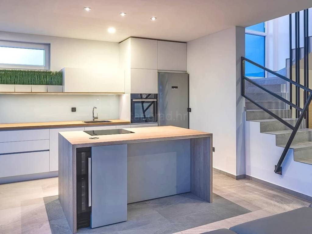 As part of the rich real estate offer in the Kvarner region, Stan Grad Immobilien presents a modern, designer holiday home for sale, located in the Mediterranean surroundings of the northern Adriatic, on the island of Krk. This beautifully designed property is situated in a peaceful area near the town of Krk, just a short drive from the sea.