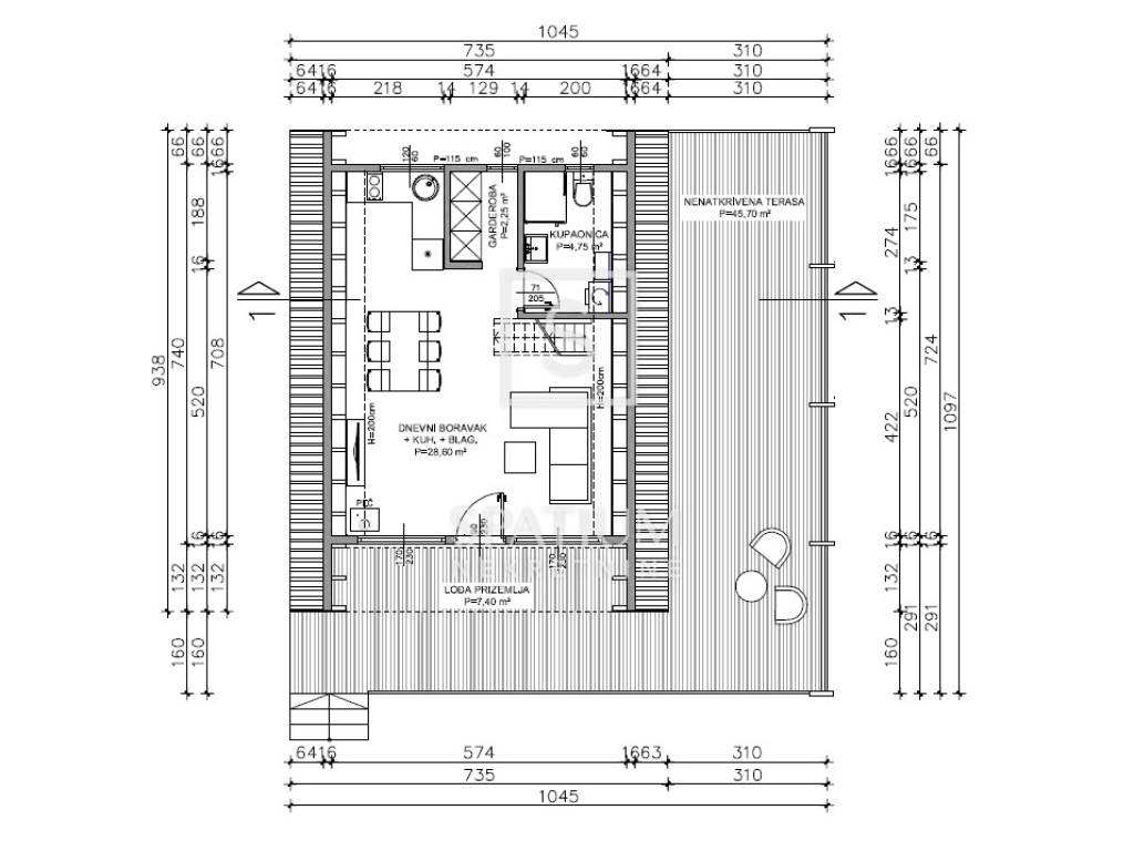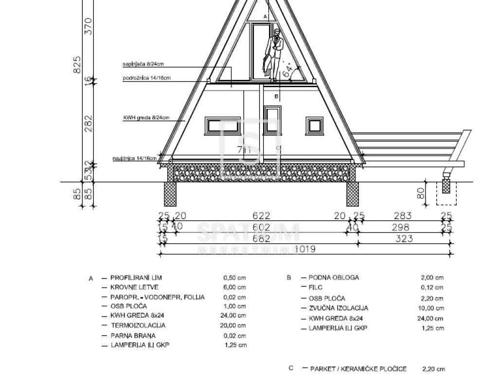 Teren je pravokutnog oblika, blago nakošen, ukuone površine 612m2. Prodaje se s pravomoćnom građevinskom dozvolom za gradnju A frame kuće. Voda i struja su dovedeni do terena, komunalni doprinosi su plaćeni tako da je teren spreman za gradnju.